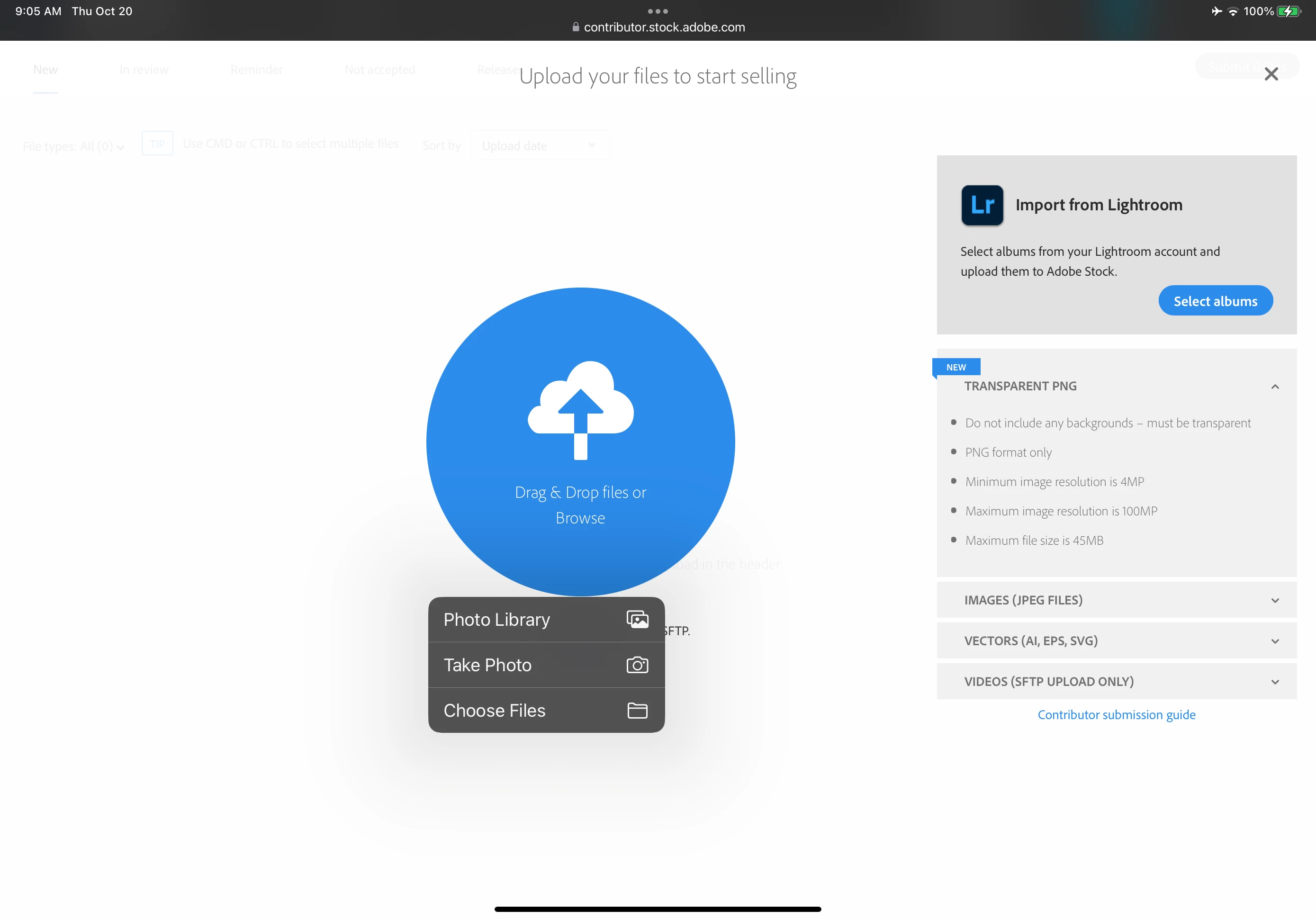 Can anyone tell me if it is possible to upload content (procreate jpg illustrations) directly from an ipad pro to adobe stock? presently I have to airdrop to my desktop imac to do it... thanks