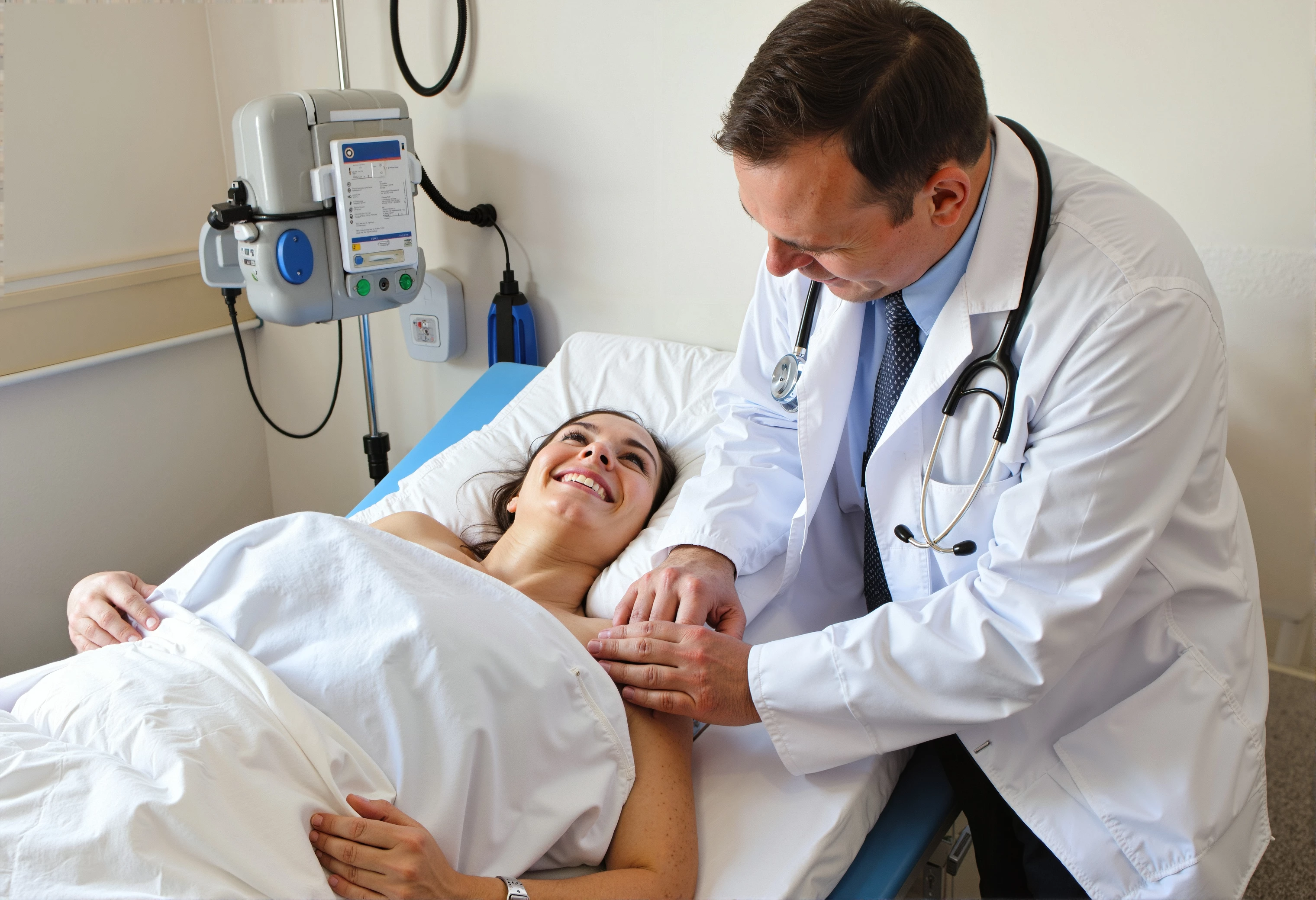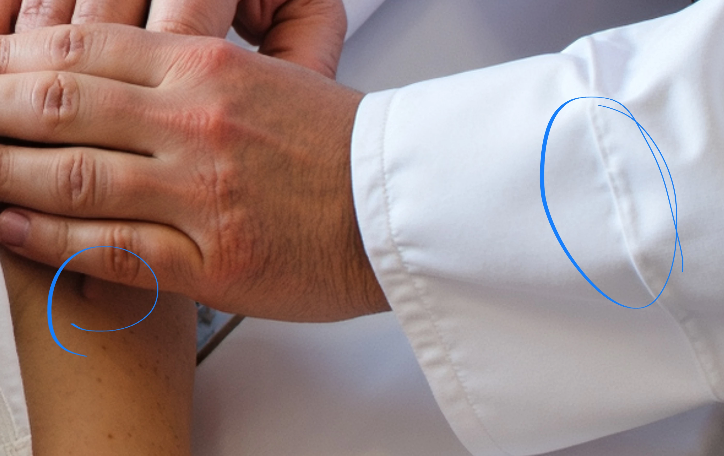 The fingers of the patient in your middle picture are weird. The jeans, I mentioned. And then: 1) is the arm of a man, also quite creepy. It seems that your AI is doing a bit of Frankenstein's work.