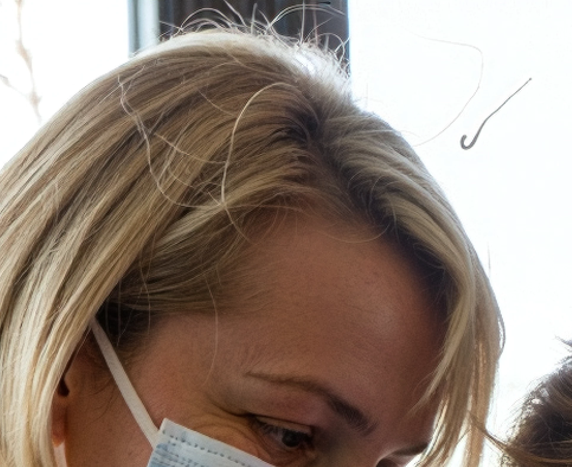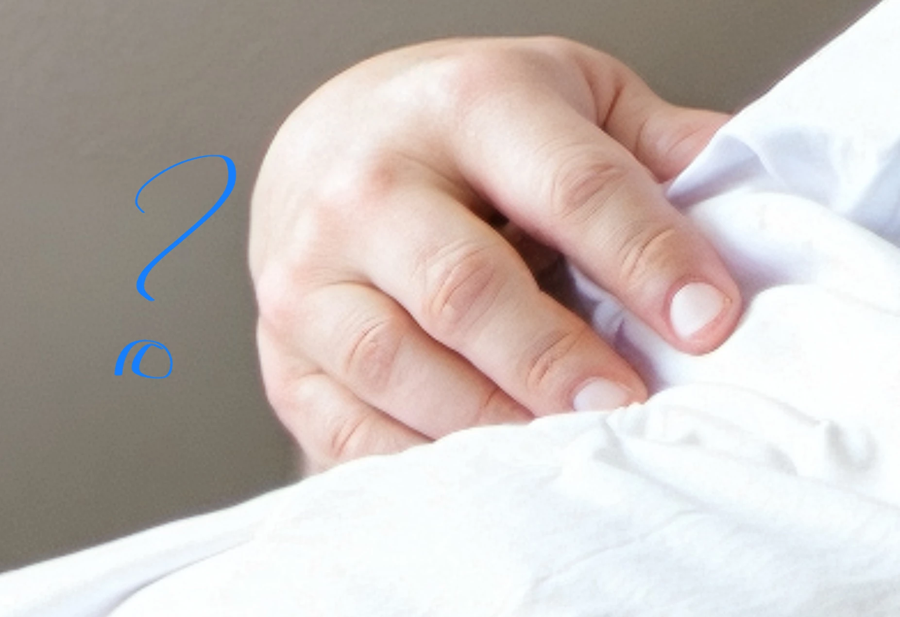 The young lady in the hospital bed has two different hand styles: the one here in the picture is the hand of an older person, or at least fater person. Creepy.