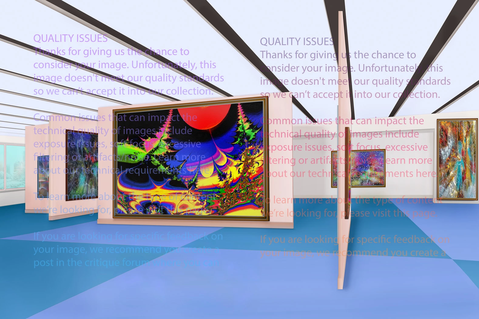 I think the moderator made a mistake. Alll three should been rejected for quality issues. And submitting three images that, at first glance, look identical to each other is living dangerously when it comes to submitting simlar content. If I submitted somthing like this, I'd submit one, with blank canvases, to let the buyer insert their own art work.