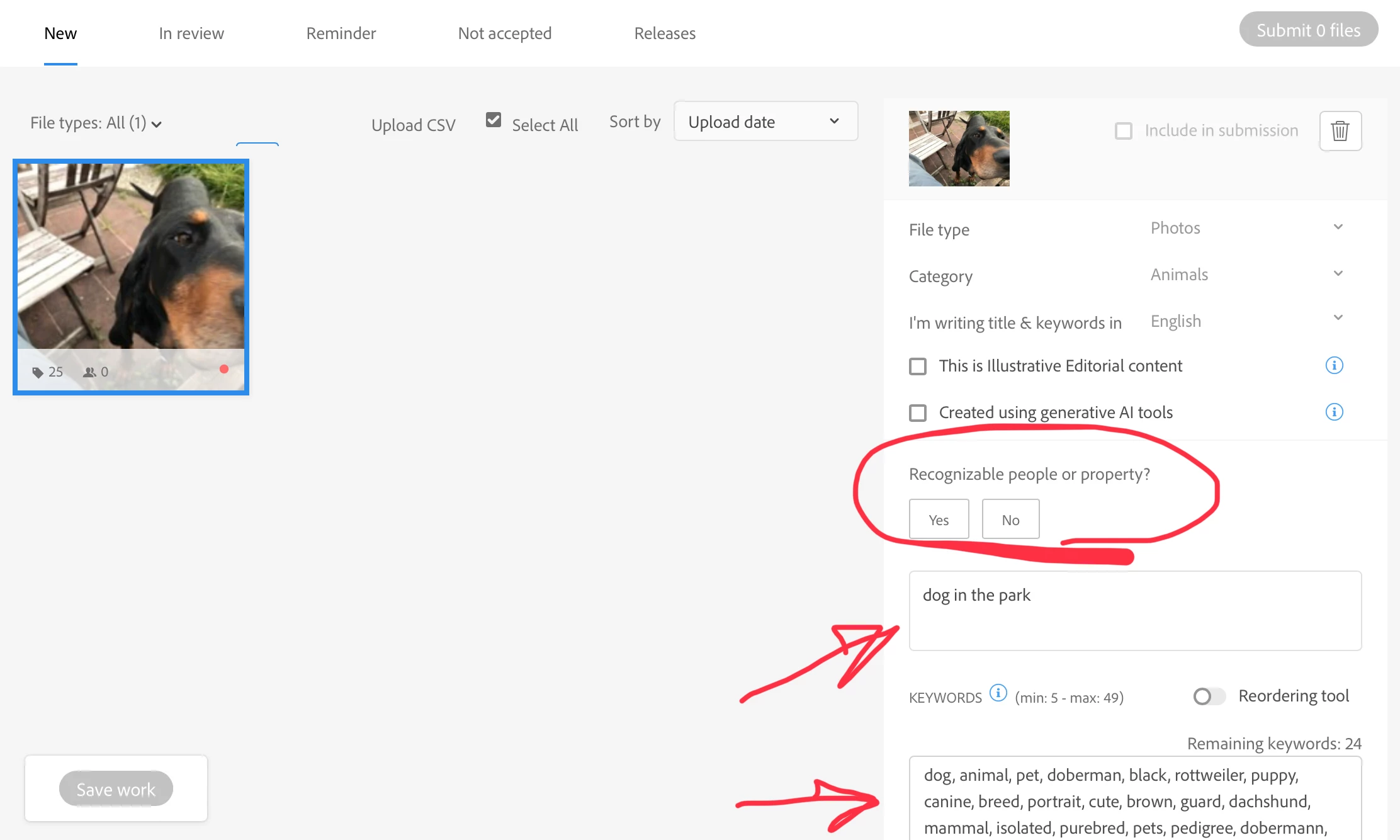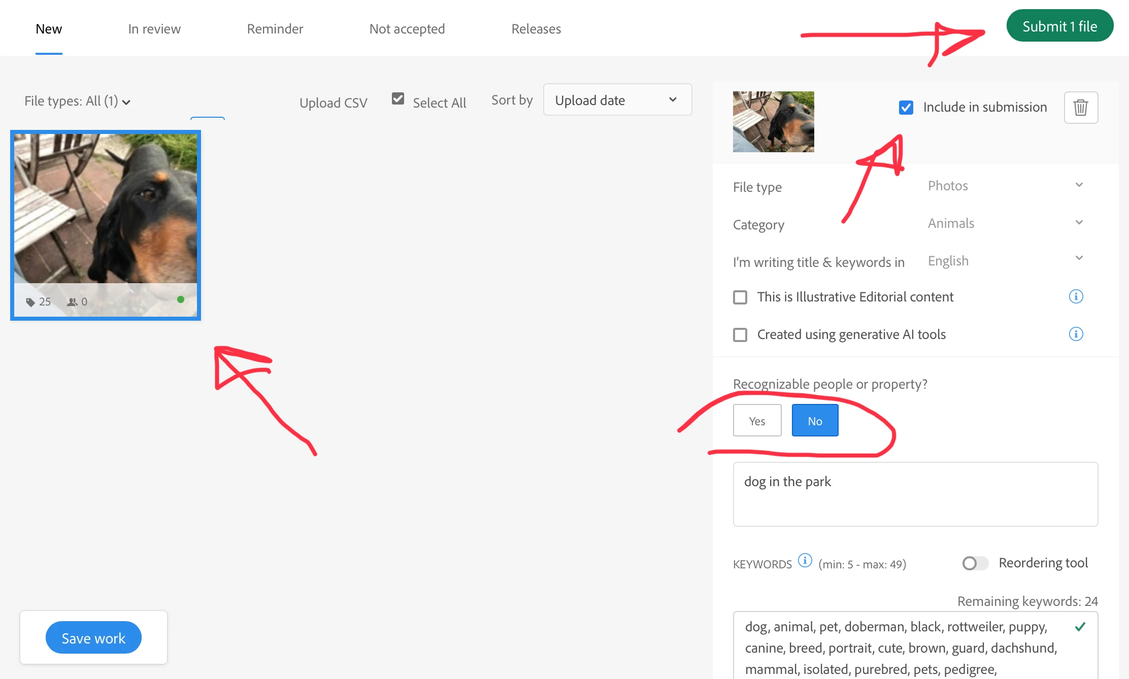 I have recently encountered an issue with the Adobe Stock website and I hope someone can help me out. I have uploaded several illustrations in PNG file format on the website, but I am unable to click the "include in submission" button after uploading the file. Here are some more details about the issue: