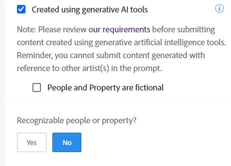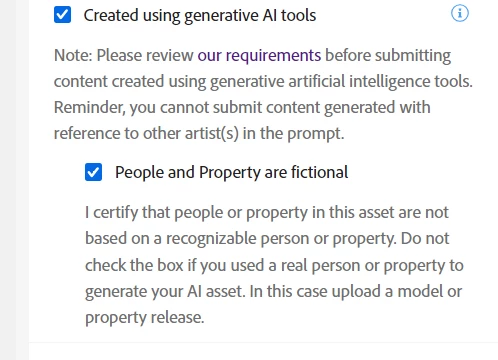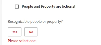 so submission for contributor have options . People and Property are fictional checkbox or Recognizable people or propterty (Yes or No). I am subbmitting AI image simple (wheat seeds on whtie background) )and have checked the AI content checkbox already What should i choose between those two?