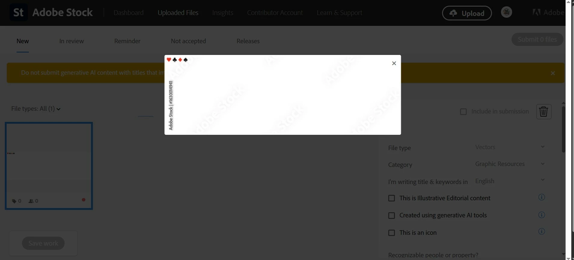However, after uploading to Adobe Stock, the preview shows my icon very small in the top-left corner with a lot of empty space.