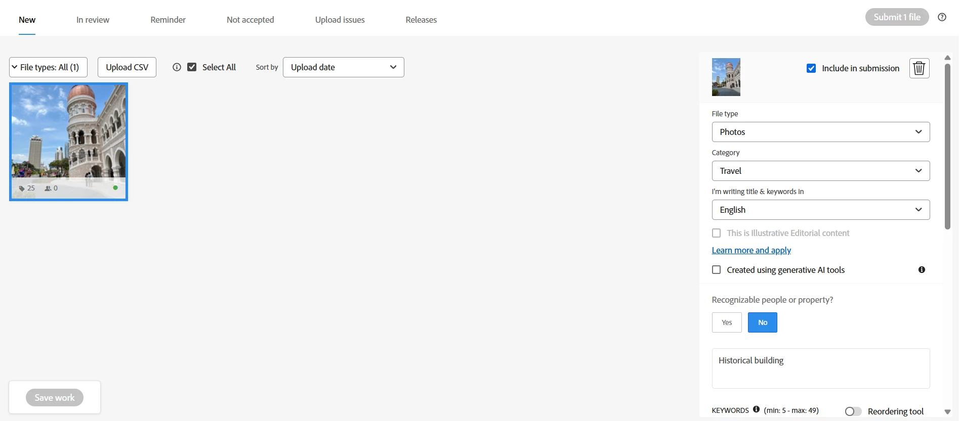 I’m trying to upload photos, but Submit button doesn’t appear. All required fields are filled and the file is marked “Include in submission.” Why is Submit missing and how can I fix ?