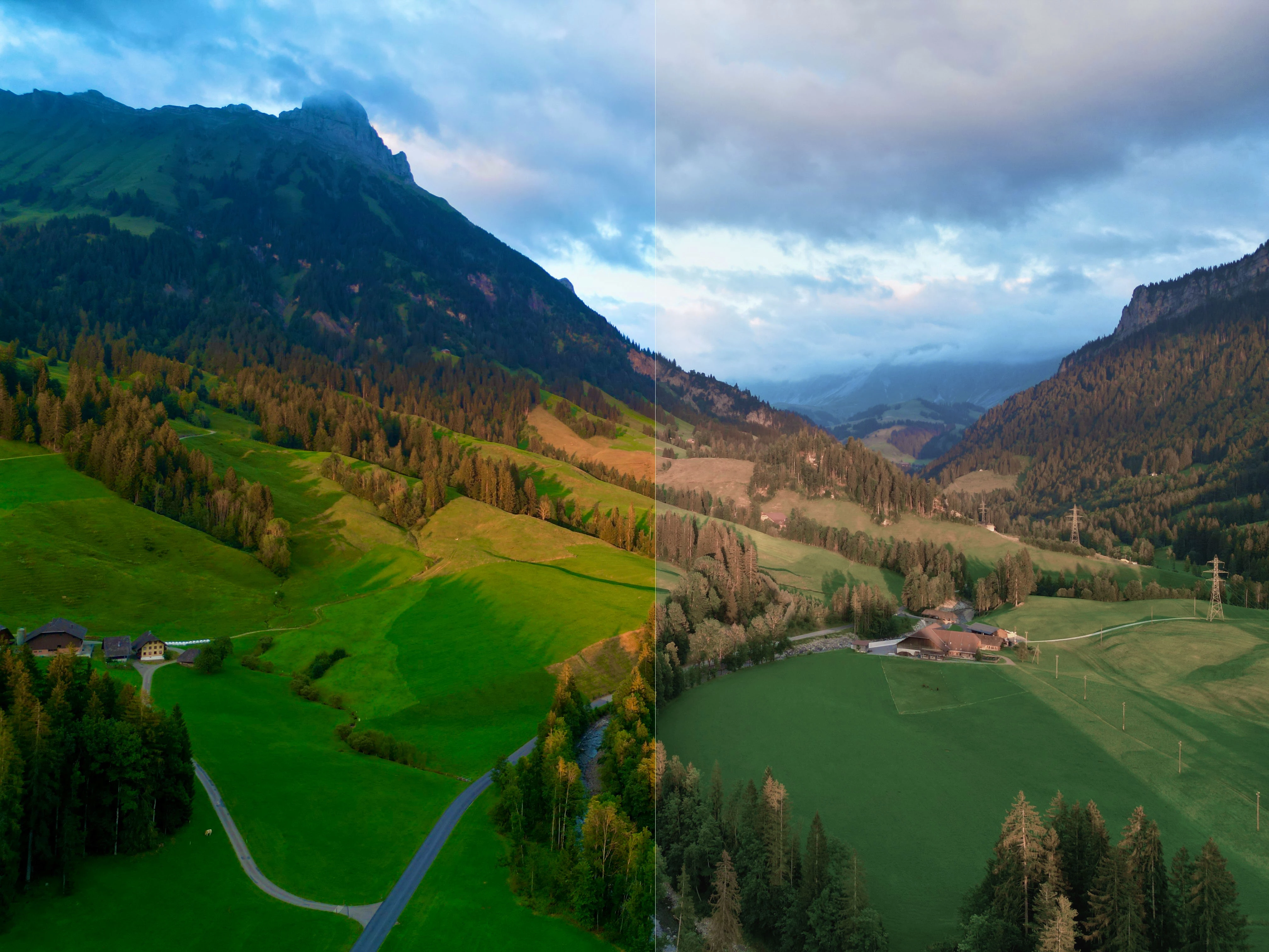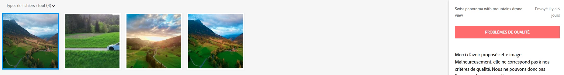 Your drone image is saved using the JPG file format. The camera software has applied some post-processing, like adding more saturation. The result of this is what you see. For Adobe stock, it could be considered too saturated.