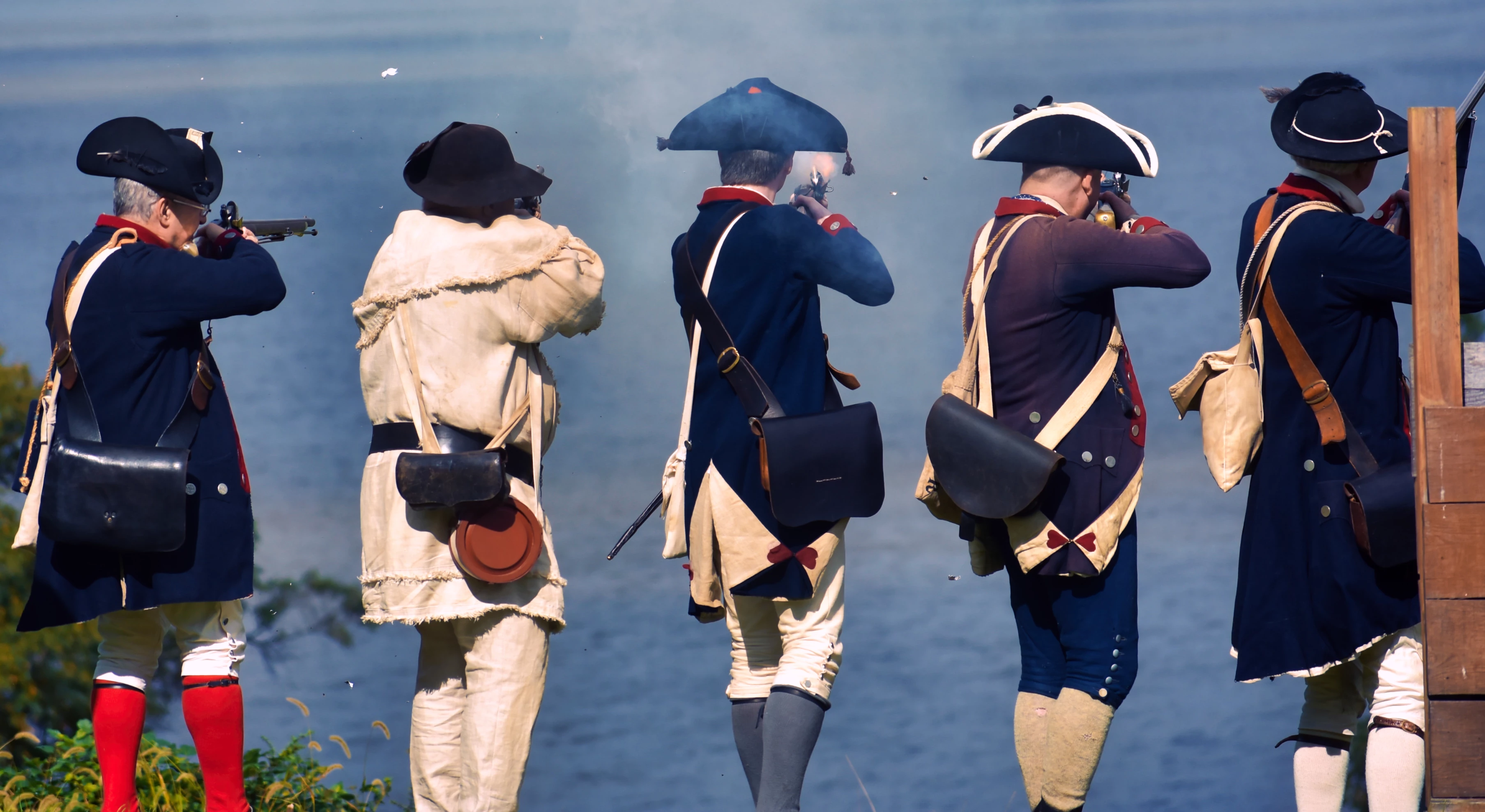 This is a photo of a revolutionary war reenactment . The individuals are not recognizable, no faces are visible, they are in a public park location, and have provided an educational and historical portrayal as unpaid volunteers. should a release be necessary?
