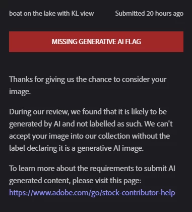 This photo is being rejected by the reason of "MISSING GENERATIVE AI FLAG". However this photo is nto AI generated, may I know if there is any way to appeal?