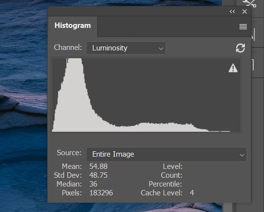 Image #1 and #2 are too dark. Histogram panel shows missing midtones and highlights. Arguably, they also contain too much blue.
