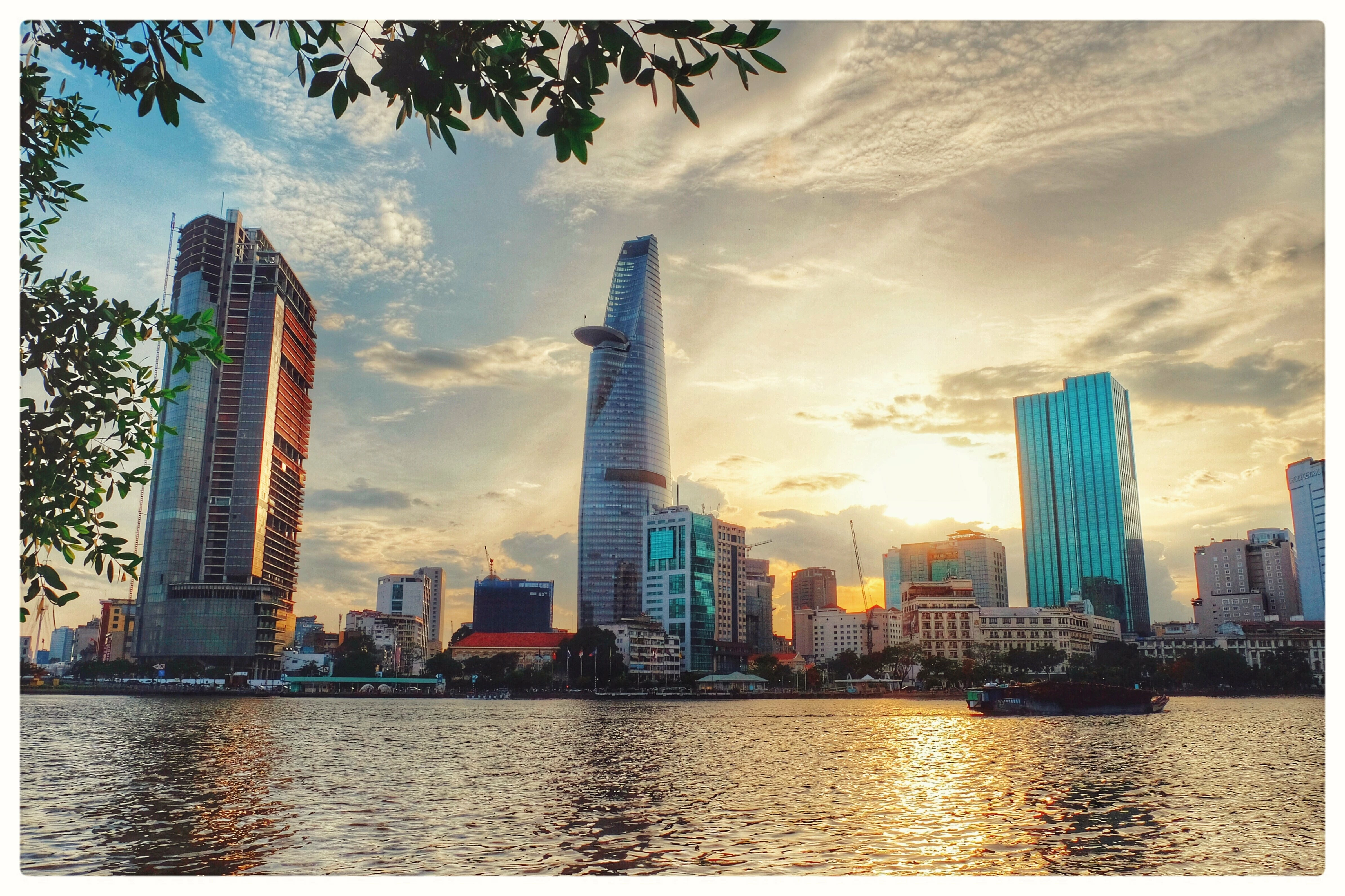 Yes, actually, there is a quality issue here! Firstly, one will argue your leaning perspectives of the buildings - typical when taken with a wide-angle lens, secondly - the sun is a little burnt out, so it makes it a white blob, so to speak. The toning may also be an issue, even though it is an evening shot.