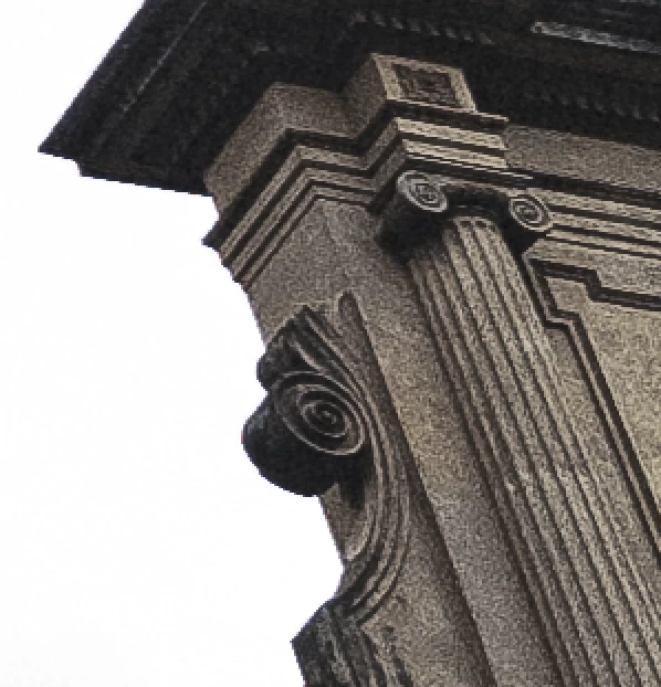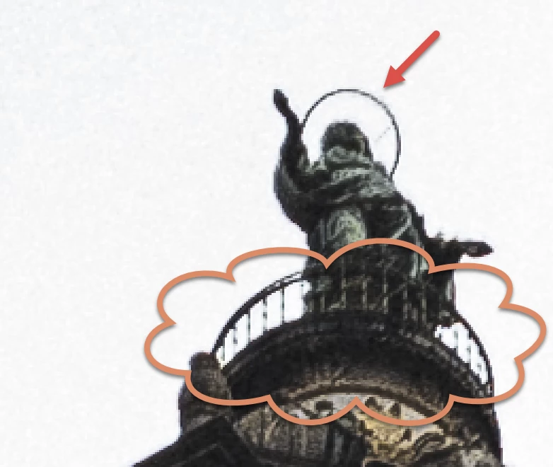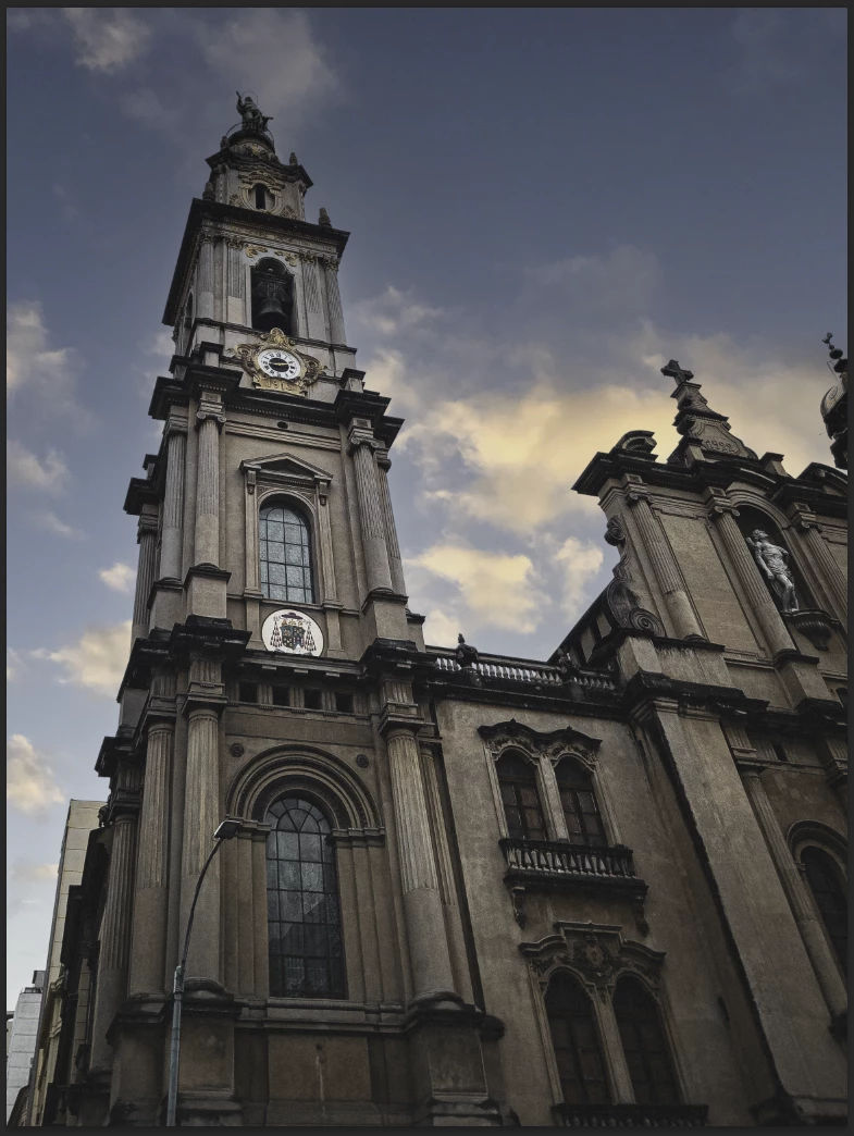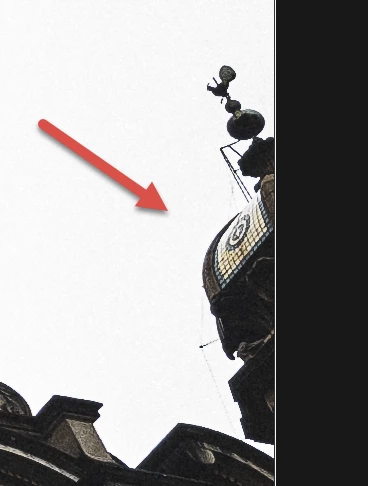Nice church picture, but you need to lift the shadows. I would also edit out this entire part, or include more of that building part:
