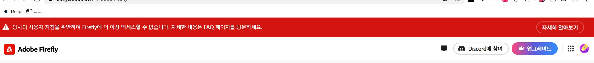 당사의 사용자 지침을 위반하여 Firefly에 더 이상 액세스할 수 없습니다. 자세한 내용은 FAQ 페이지를 방문하세요.