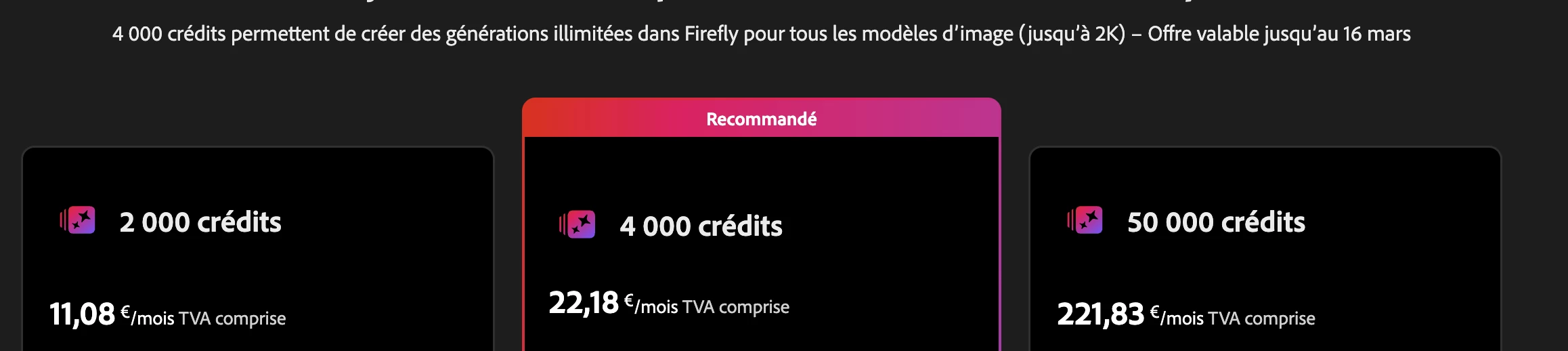 4 000 crédits permettent de créer des générations illimitées dans Firefly pour tous les modèles d’image (jusqu’à 2K) . Est-ce valable aussi pour les videos avec modèles partenaires ? merci