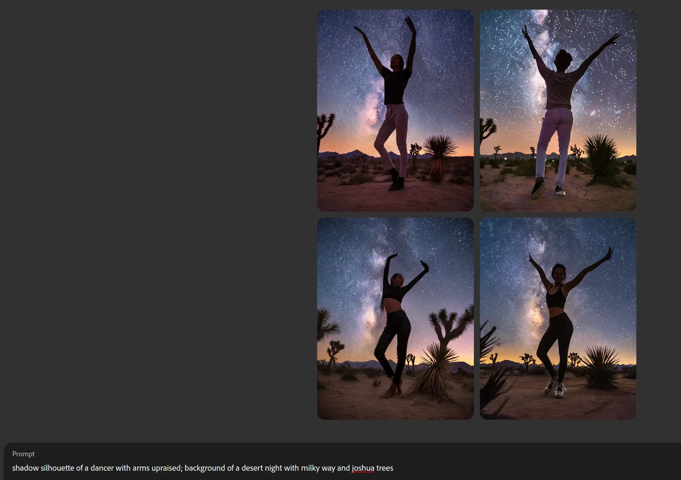 I can almost never get Firefly to provide silhouettes of people, it is always generating realistic human forms (which then have skintones). I am trying to create images without visible race and this is making it impossible. Otherwise Firefly is far better than other generative image AI, but if I ever want humans I'm unable to use it.