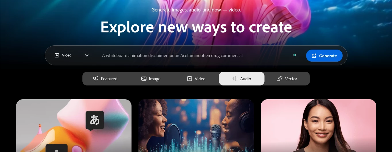 I'm not sure if I just don't know how to use it, but when I put a prompt to generate audio, it generated a video instead, which didn't have audio either.