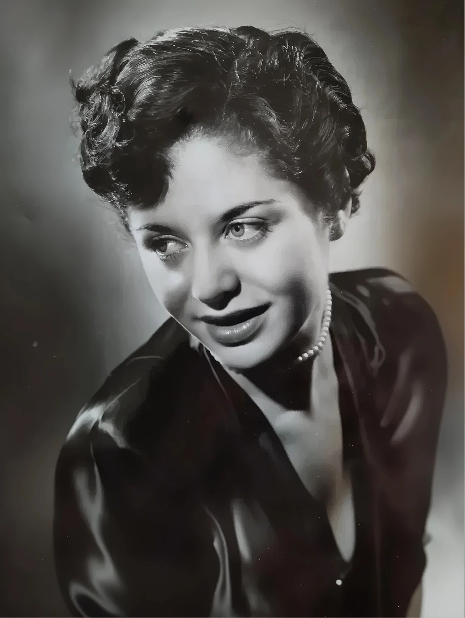 "Glamorous woman from the 1950s smiling at the camera"