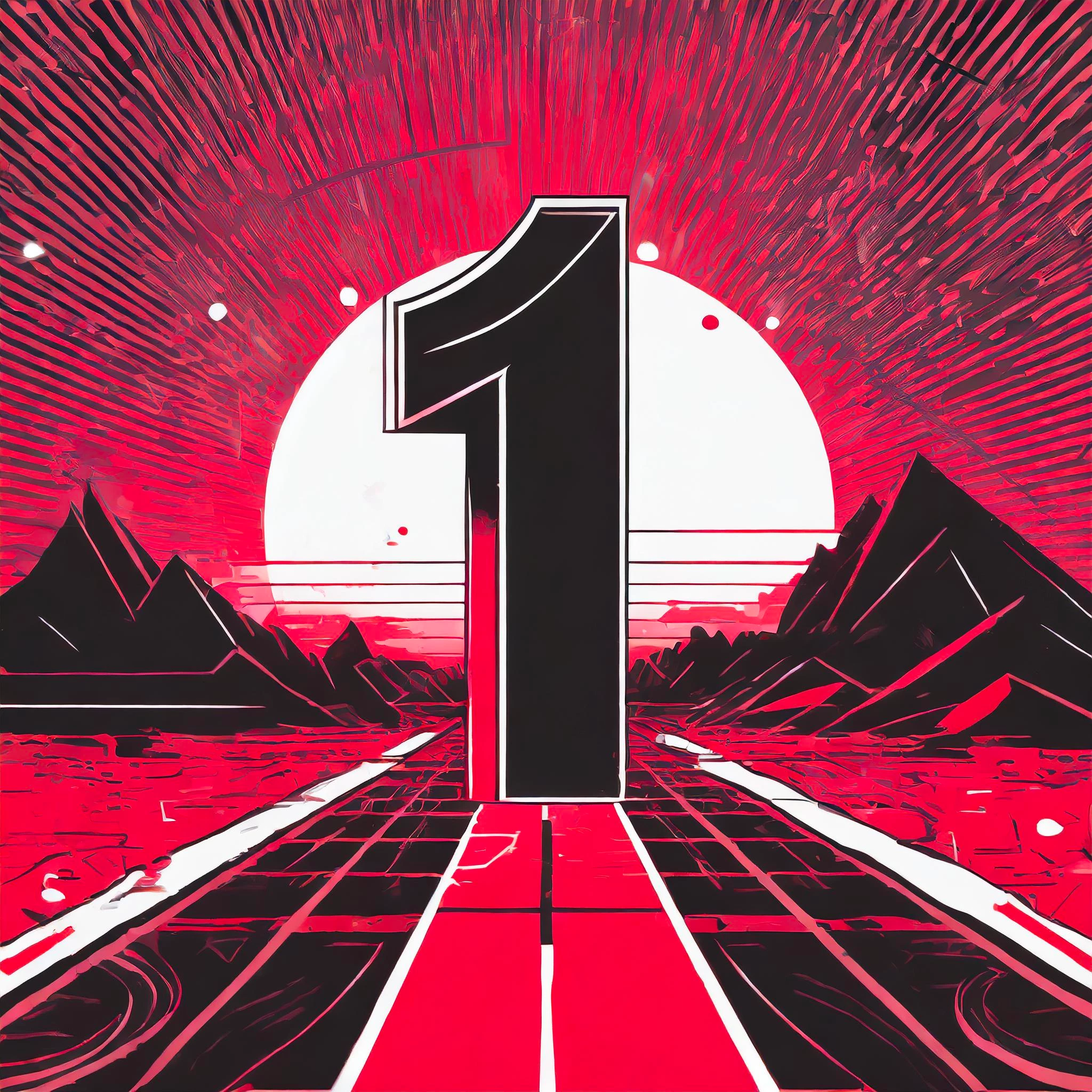 Prompt: Dadaist style poster, black white and red, with a big number one in the middle