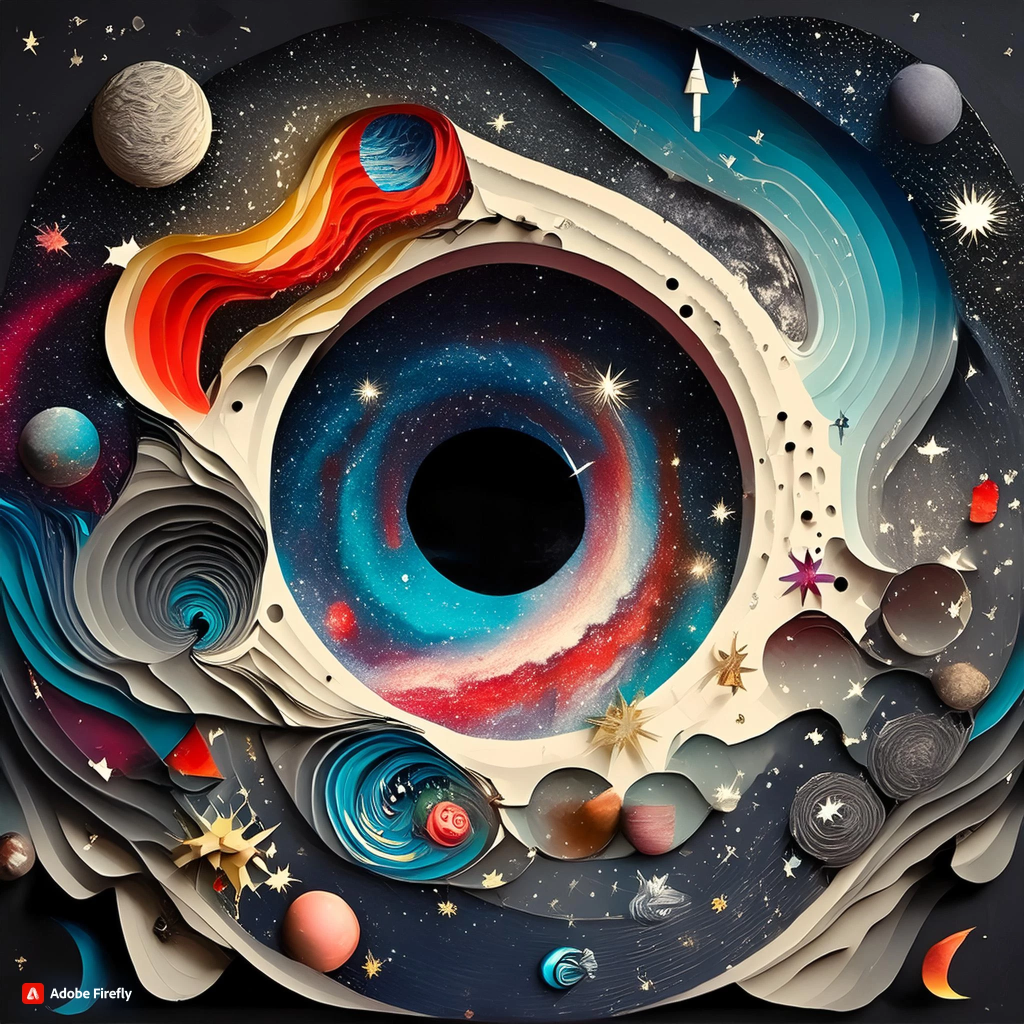 Here's my cue word and added a collage picture for style reference:Unreal Cosmic Black Hole, 8K, Rich in Detail