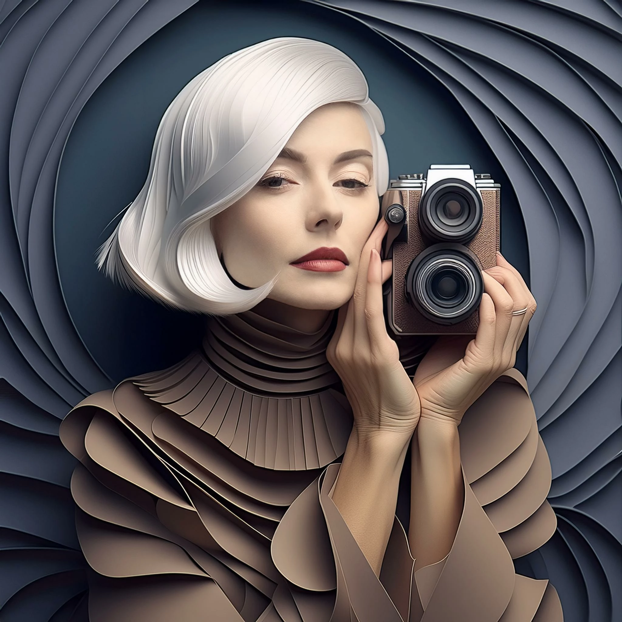 Used a Structure Reference image of me (my current favourite headshot) and included a few of my favourite things: my vintage camera collection, my love of fashion and my obsession with art deco!