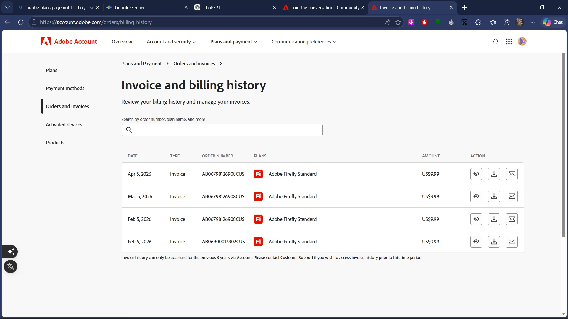 I am writing to report two billing errors related to my Adobe Firefly subscription that require immediate attention.