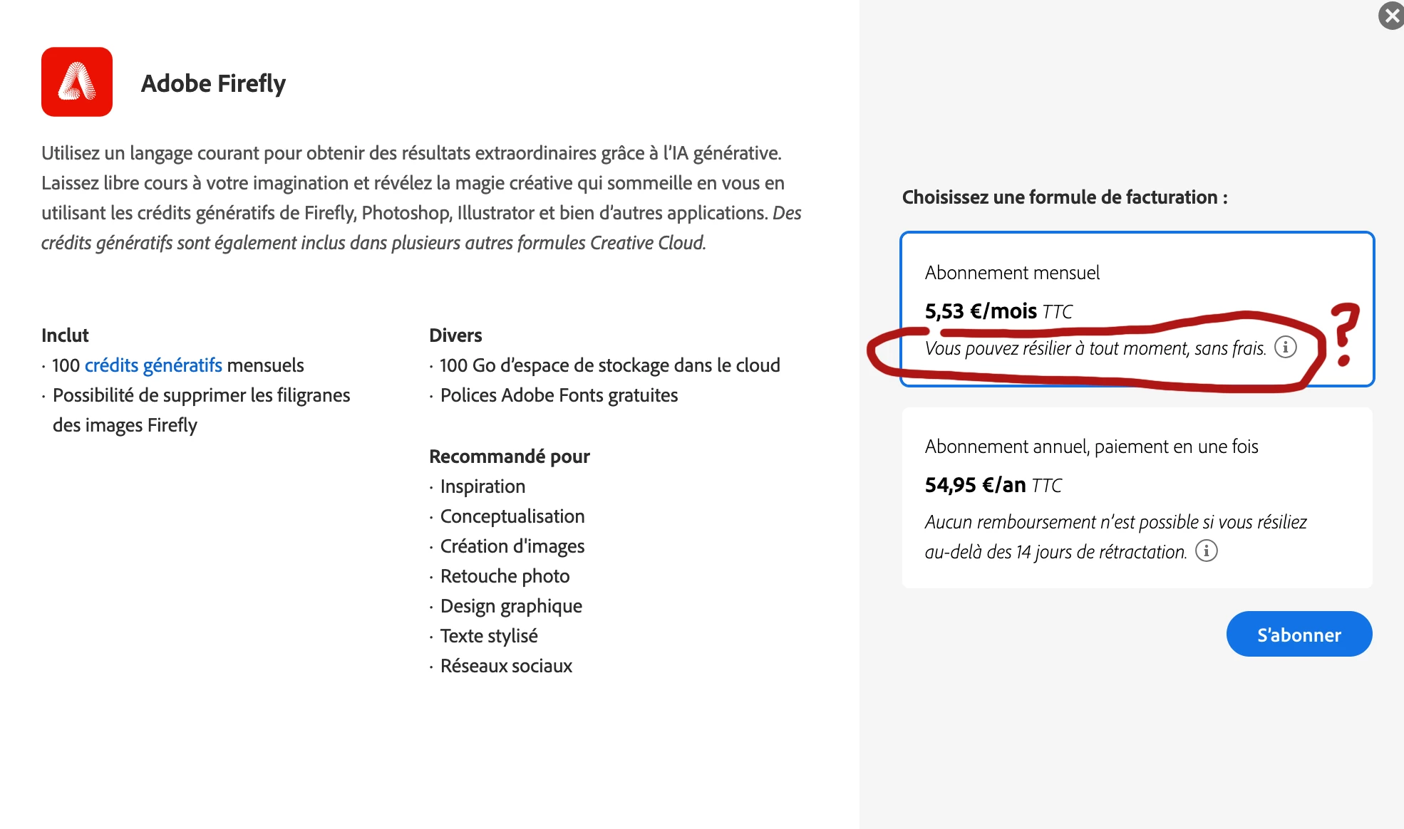 ZZoe348955349eyxParticipantForum|Forum|1 year agoOctober 21, 2024QuestionCrédit FireflyForum|Forum|1 year agoOctober 21, 20241 reply168 viewsComment résilier un abonnement aux crédits génératifs supplémentaires de Firefly ?Imaging