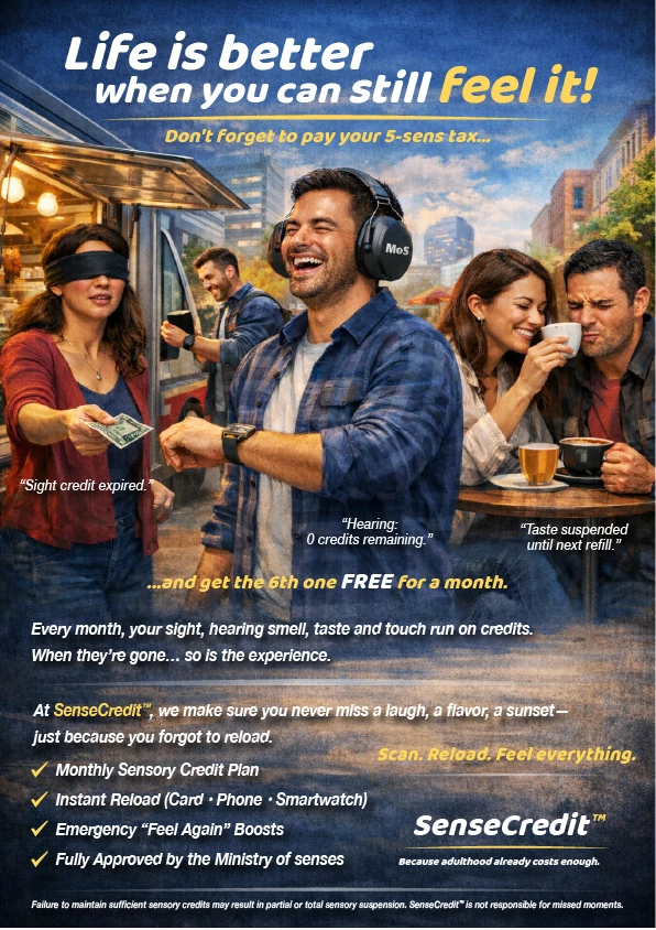 Design a civic poster—propaganda, safety warnings, or recruitment ads—for a world that runs by different rules. Maybe it's a world where air is a subscription service, or where silence is the local currency. Maybe it's