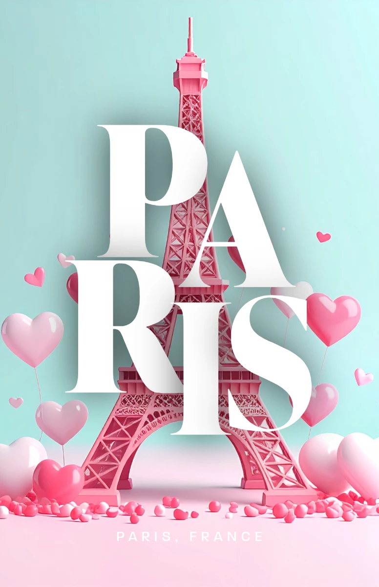 I generated the background image in Adobe Firefly using the prompt: "Romantic 3D Eiffel Tower Paris, France." I then imported the image into Adobe Express and used a template along with text effects to design the rest.