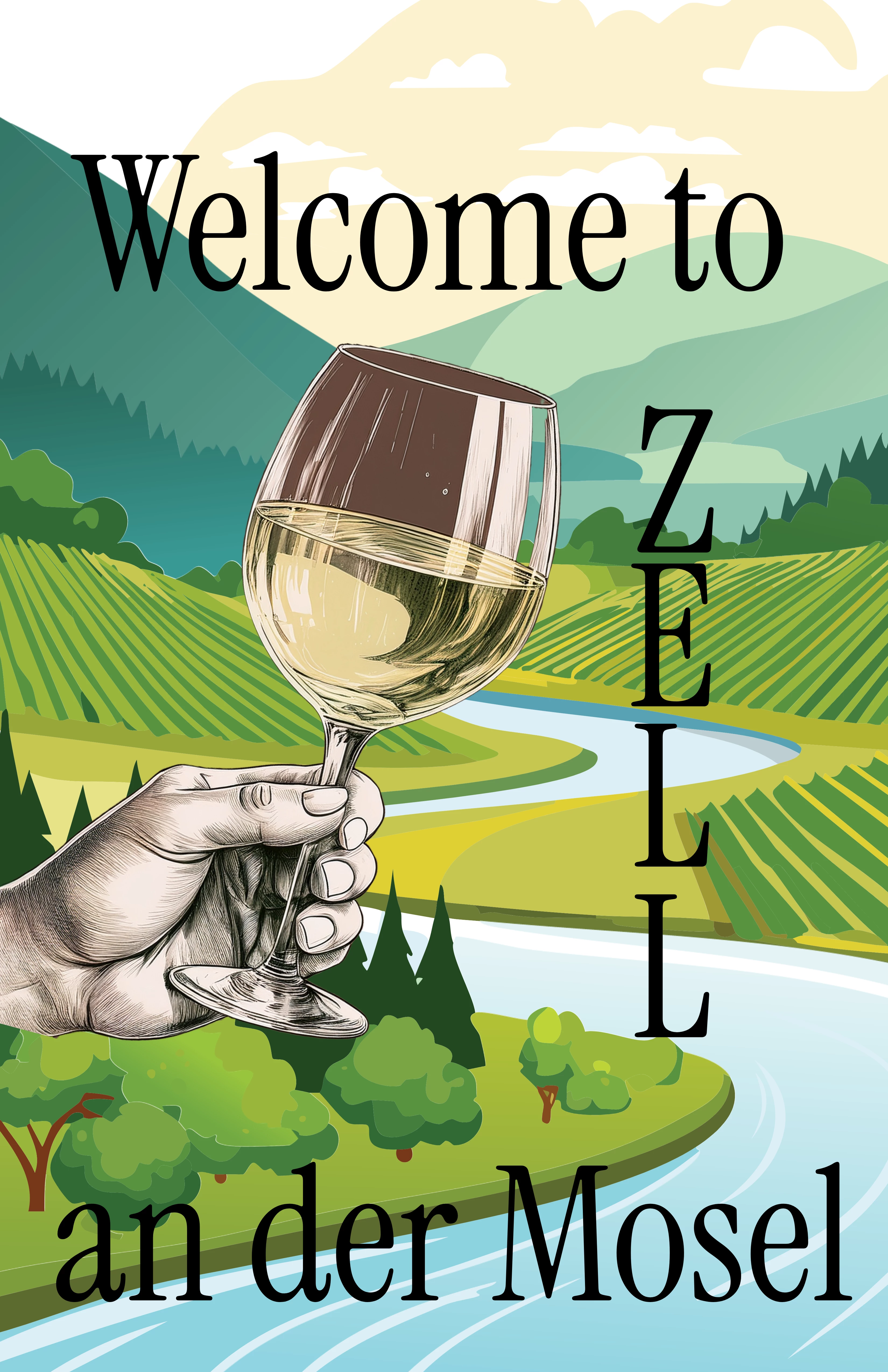 To create my travel poster, I asked Adobe Illustator to create a vector image of "a bendy river with a forest and vineyards." Then, I brought the design it generated into Adobe Express and layered the text with the font I chose as well as generating the hand with the glass of wine as it is important to the culture of the town.