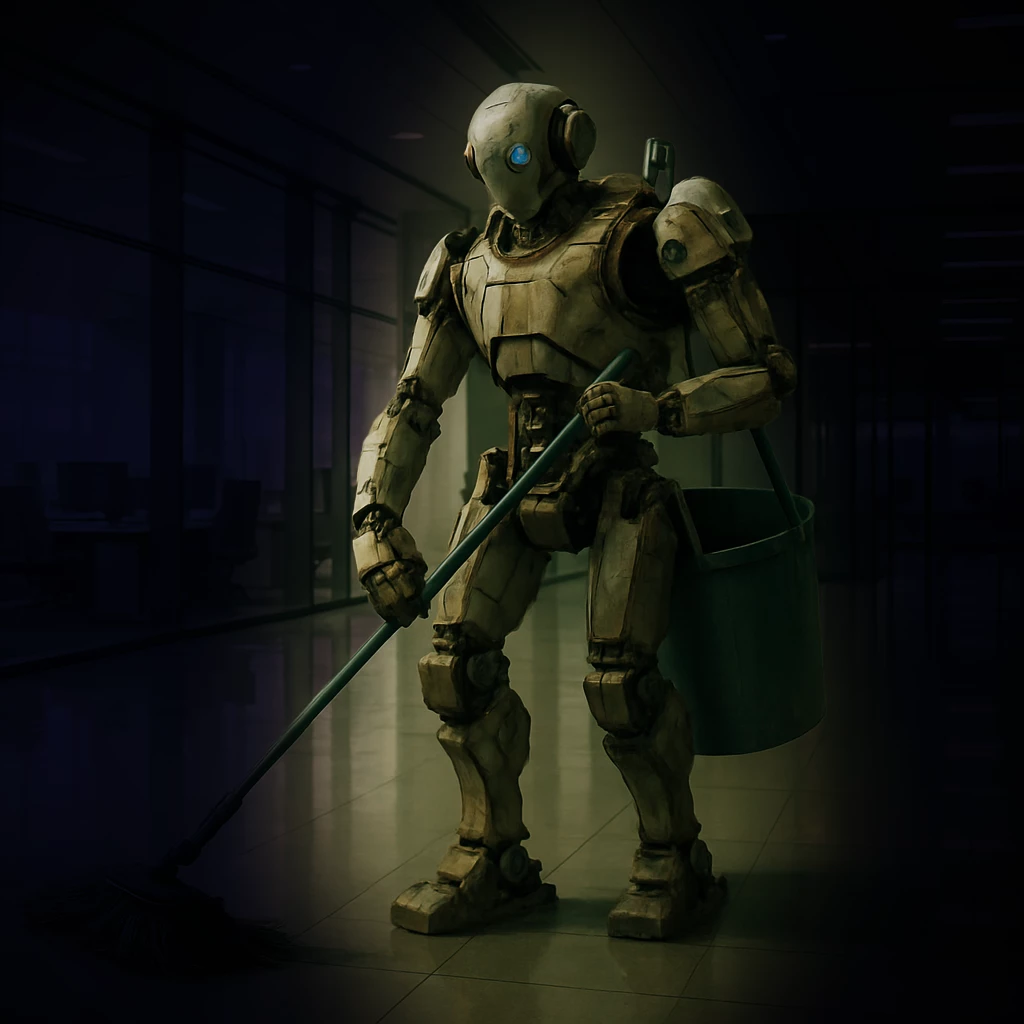 Nicely done, nonetheless. I like the moody, dystopian atmosphere. As an aside, where do gender-specific metal robots come from? There's a whole new level of equal opportunity in there somewhere!
