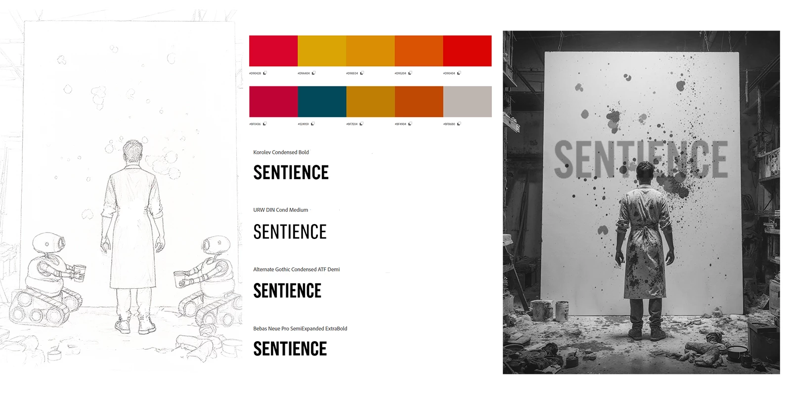 After fleshing out my idea for this comp, I generated "stock images" that I could use to create rough composites in Photoshop. I used Adobe Color to brainstorm ideas for the color palette and Adobe Fonts to figure out the typeface to use in the design.
