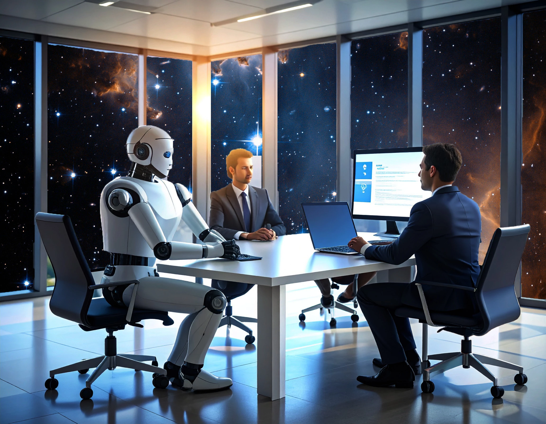 Use your imagination. What does the robot hiring process look like? Build out your scene using at least Firefly and Photoshop or Photoshop for Web.