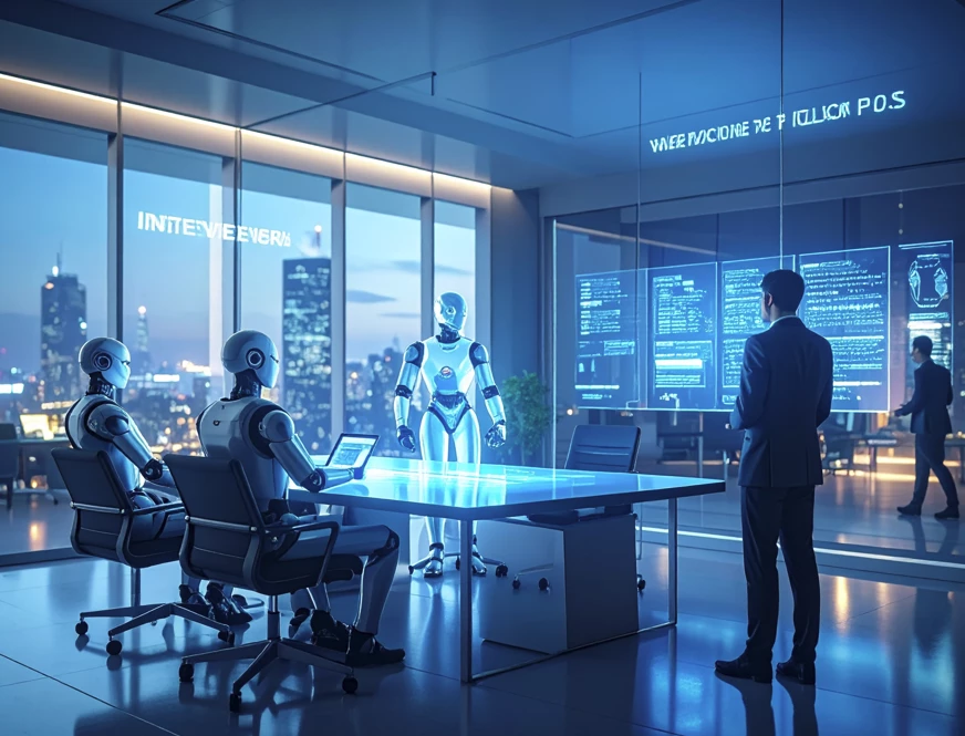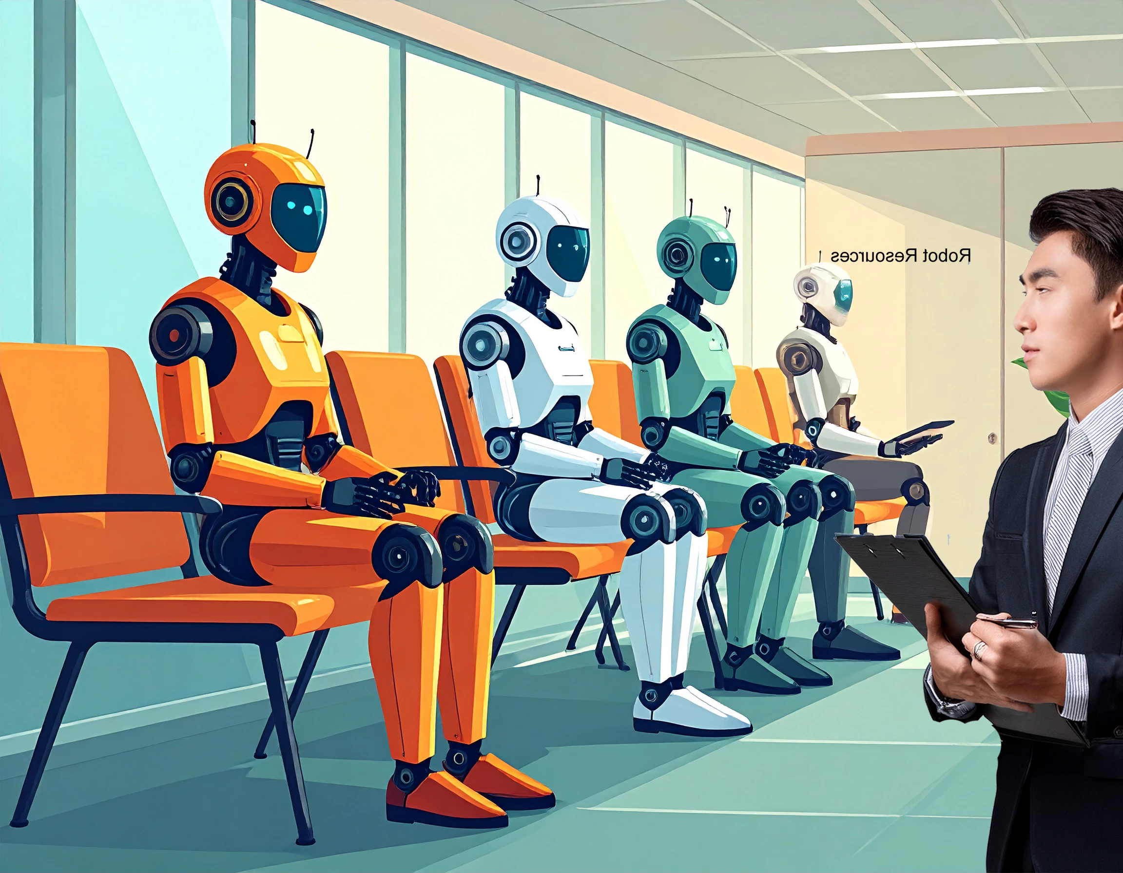 Use your imagination. What does the robot hiring process look like? Build out your scene using at least Firefly and Photoshop or Photoshop for Web.