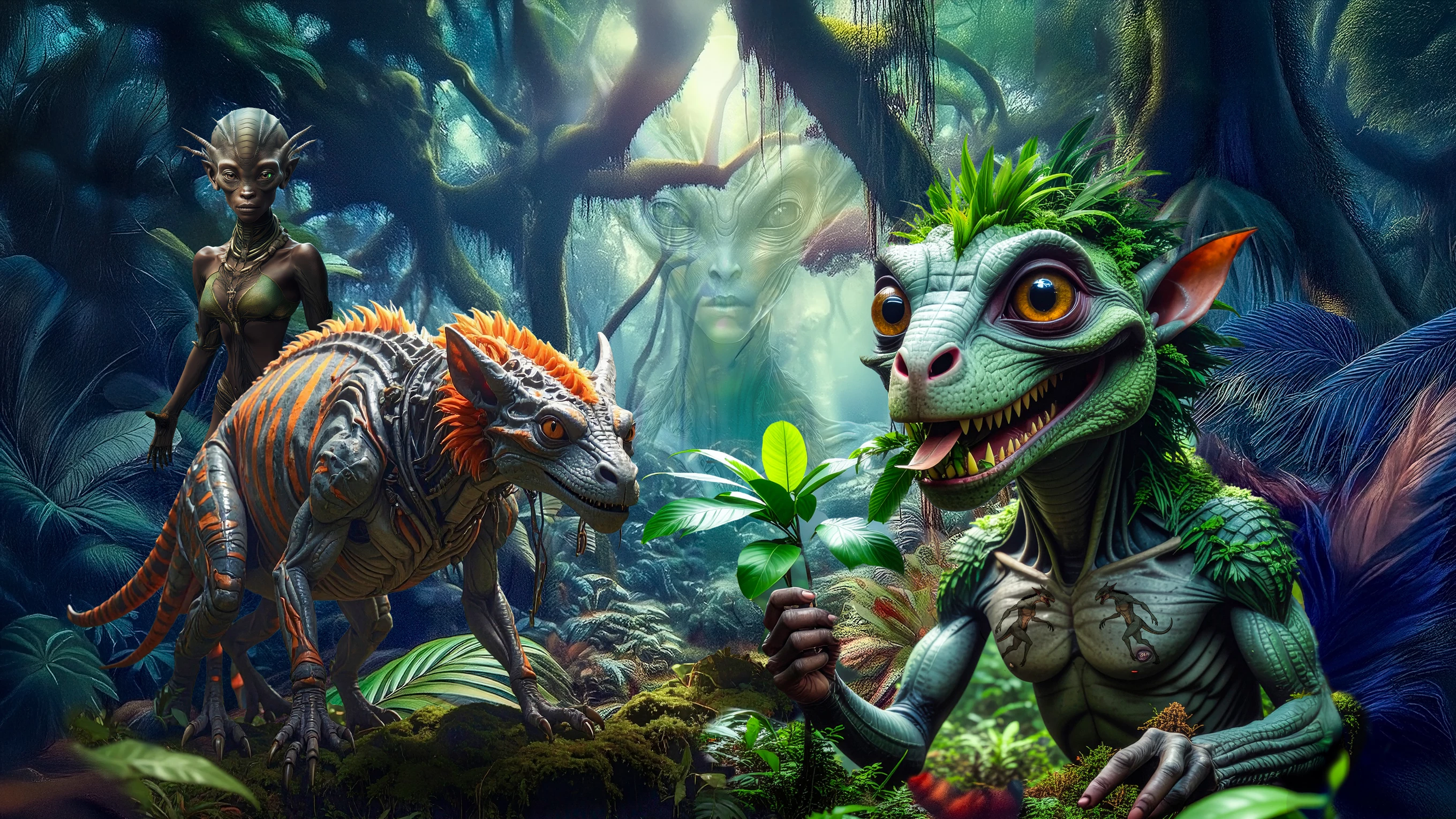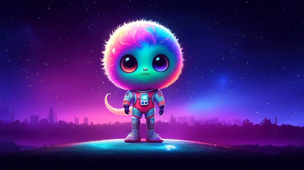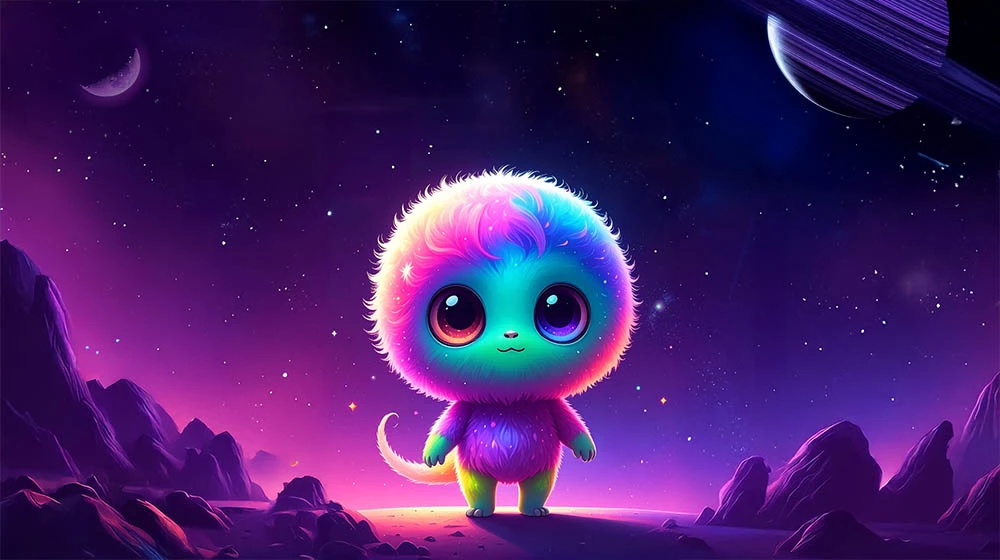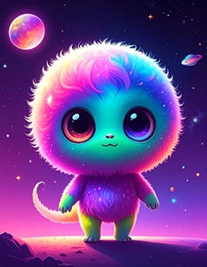 Generate an extraterrestrial Sci-Fi creature using text-to-image in Firefly, Photoshop, or Illustrator in your chosen style, then complete the picture. What kind of world does it live in? What other critters or plants or alien natives are there? Using any tools you like, build an environment for your critter to show it in its natural habitat.