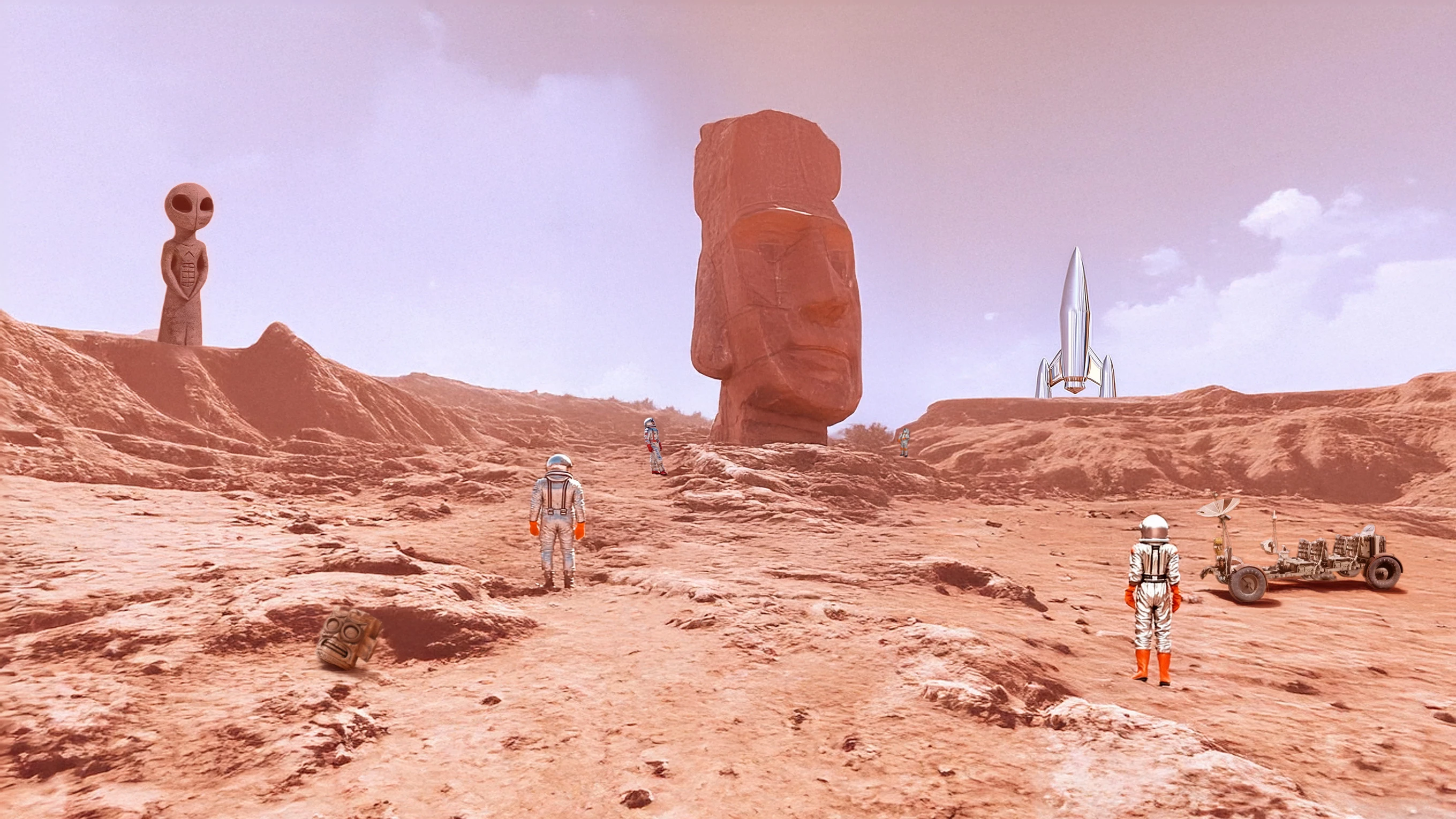 Finally, I put everything back into Photoshop to create the final scene with some color grading and dramatic lighting.