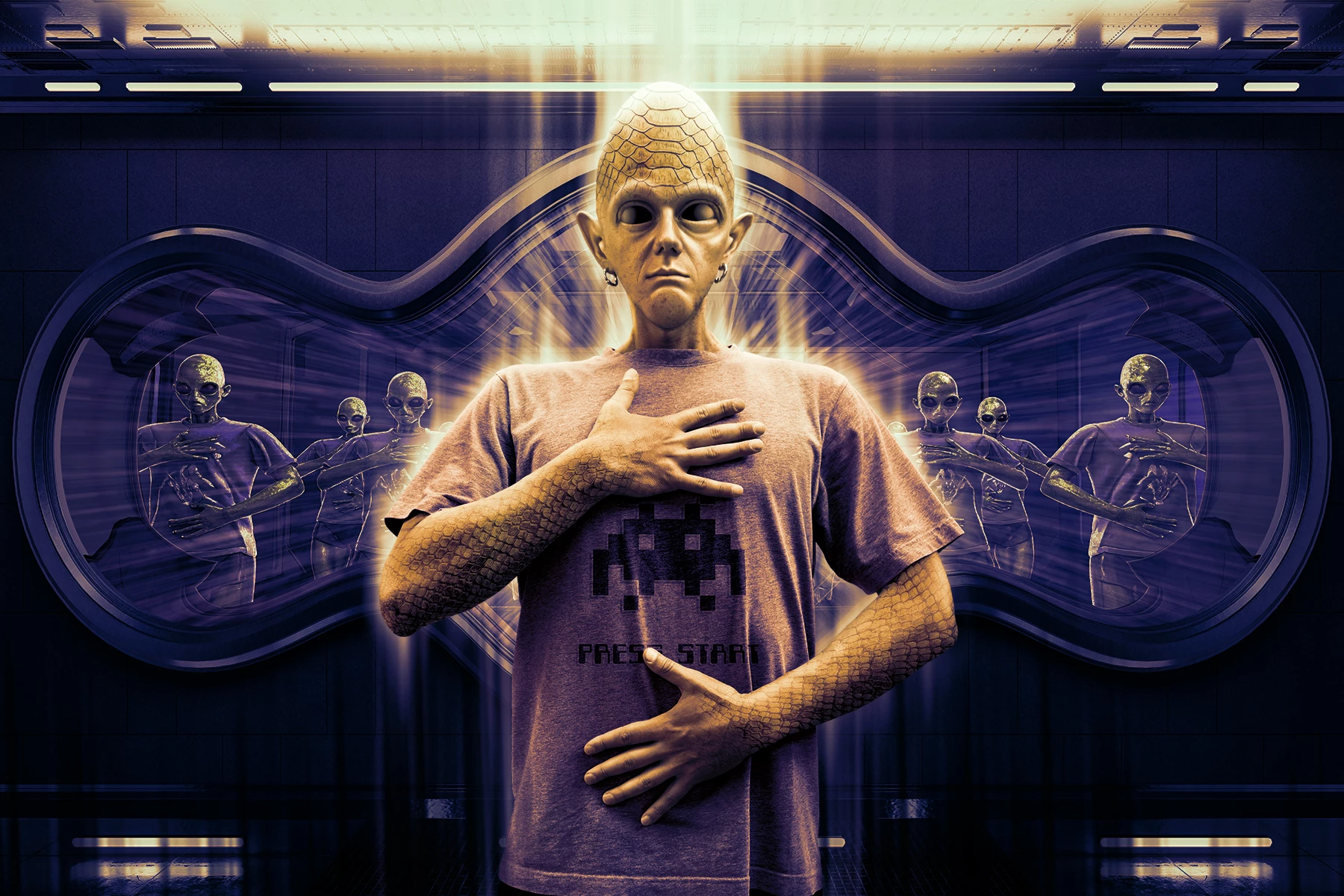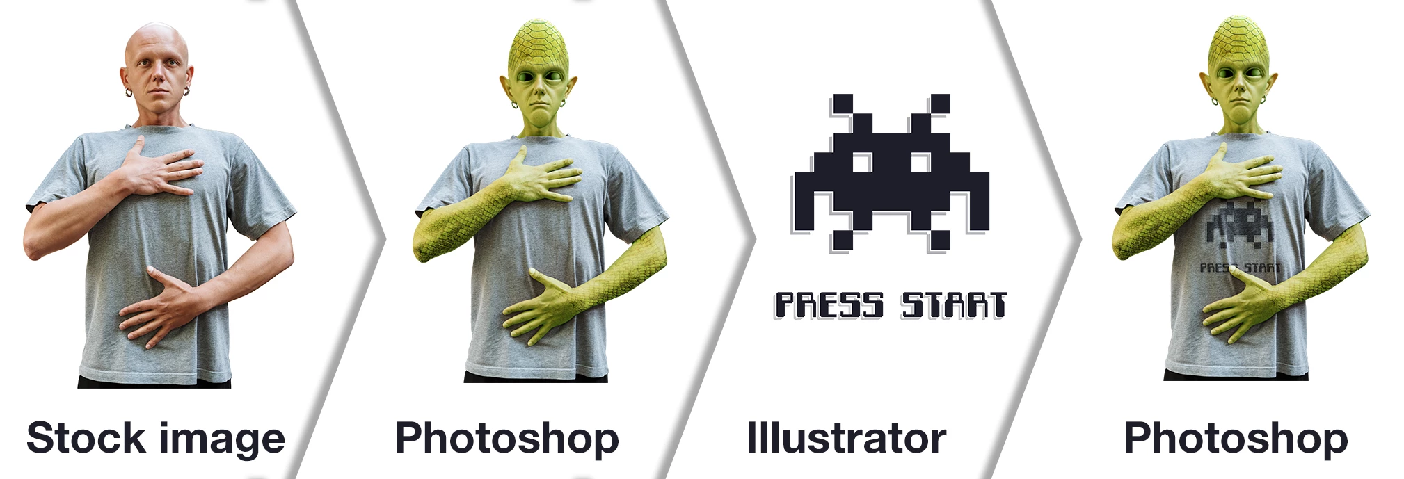 I started in Photoshop to create an alien main character from an archive image.