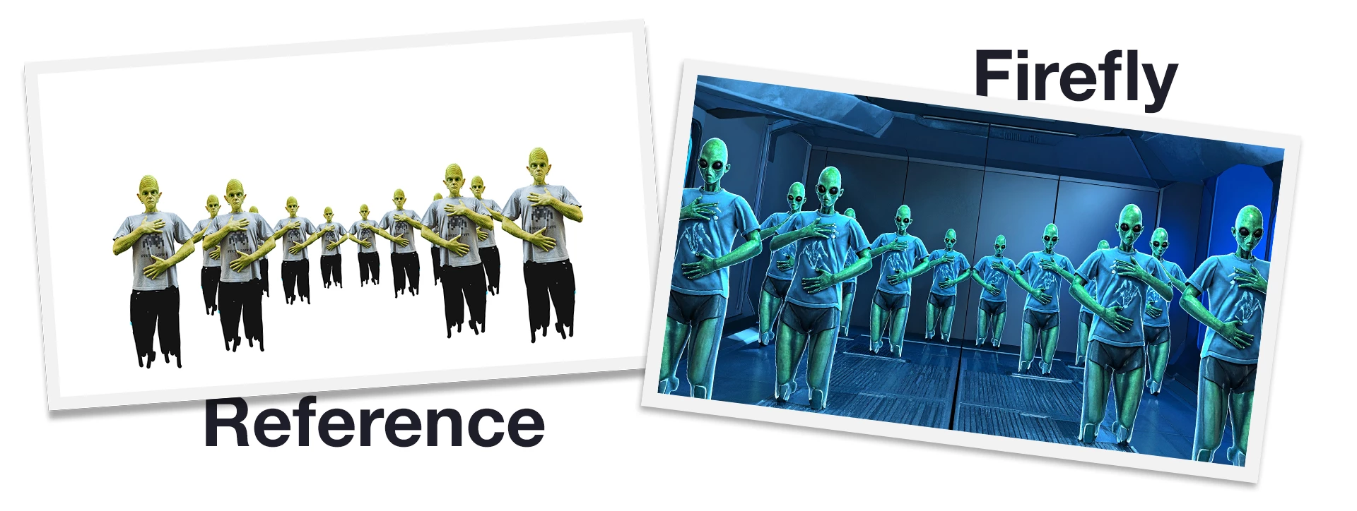 I used the main character to create a rough reference image to use in Firefly to generate an army of Zen aliens.
