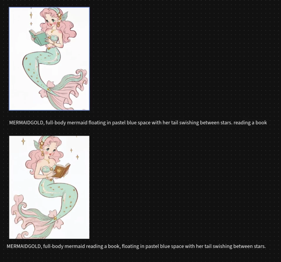In my case, the model keeps the character identity quite well, but I’ve noticed framing issues. In full-body images, it often crops the mermaid, even when using prompts like “full-body,” “entire character visible,” or “not cropped.” I also tested different aspect ratios, and the cropping still happens.