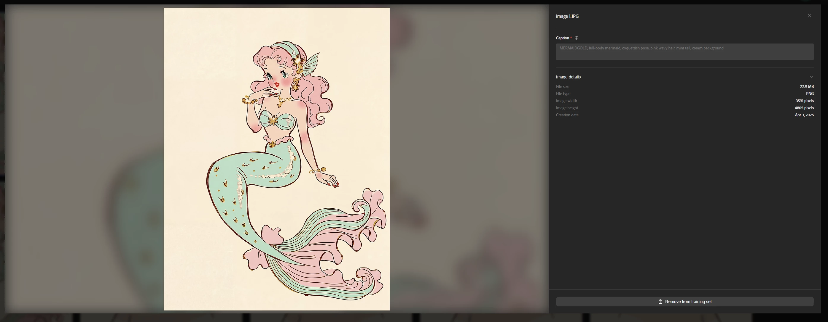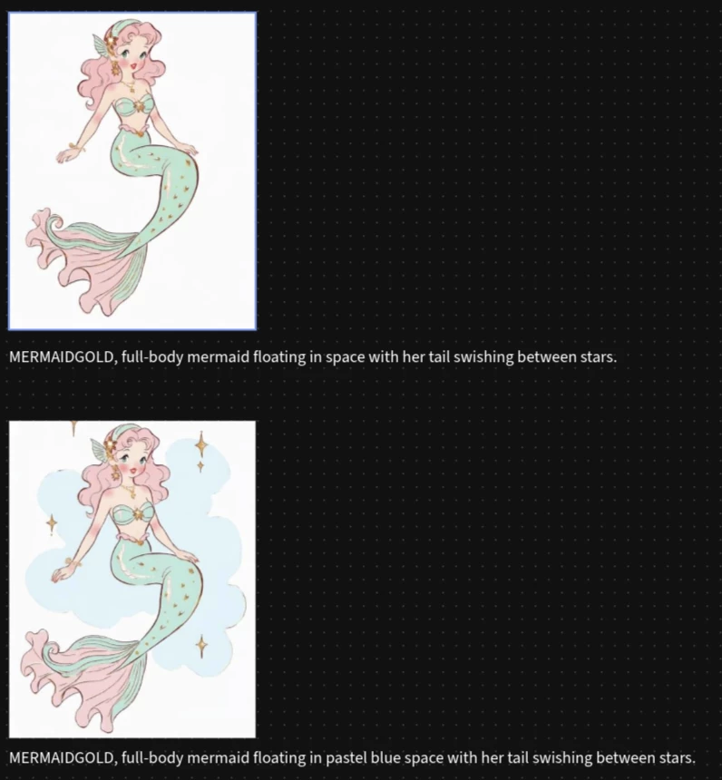 In the training set, I used “full-body mermaid” in the captions for the full-body images and “portrait” in the captions for the portrait images.