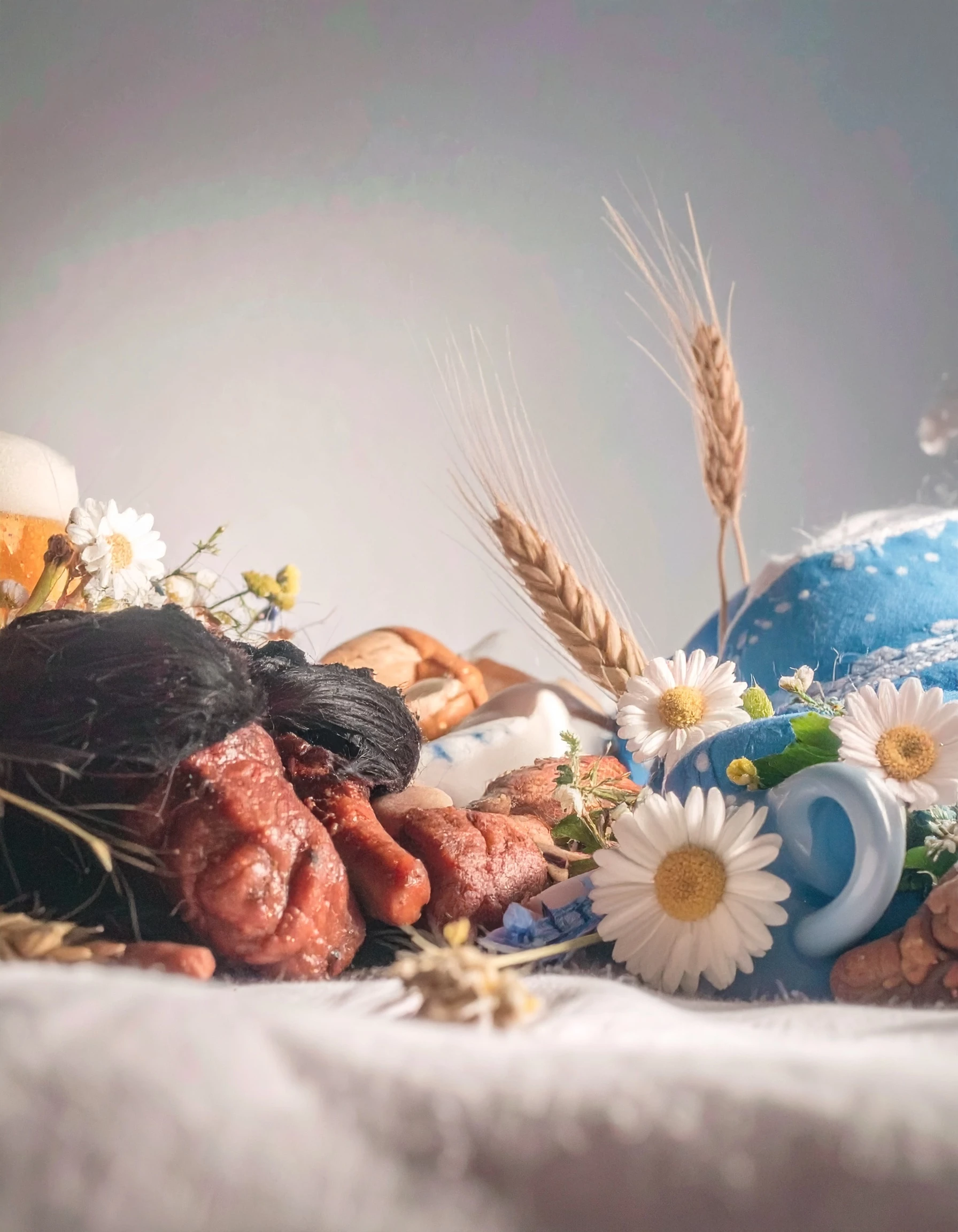 Ich benötige eine Geburtstagskarte in A4 Hochformat. Es ist eine bayerische Feier und die Karte sollte traditionell aussehen. Farben im Focus sollen bayerisch weiß und blau sein. Es soll eine Volksfeststimmung mit Weißbier und Grillfleisch vermitteln. ein Hauch von Musik und Fröhlichkeit, feiernde Gäste und platz für Text.