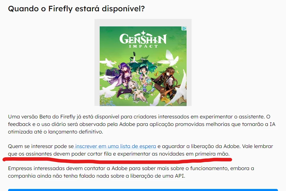 Sou assinante do Creative Cloud, havia a promessa de agilizar o processo de cadastro no irefly. Fiz a inscrição há vários dias, mas não foi feita a liberação ou qualquer notícia sobre o cadastro. Estou para assinar o midjourney, tem alguma notícia de quando vai haver essa liberação?