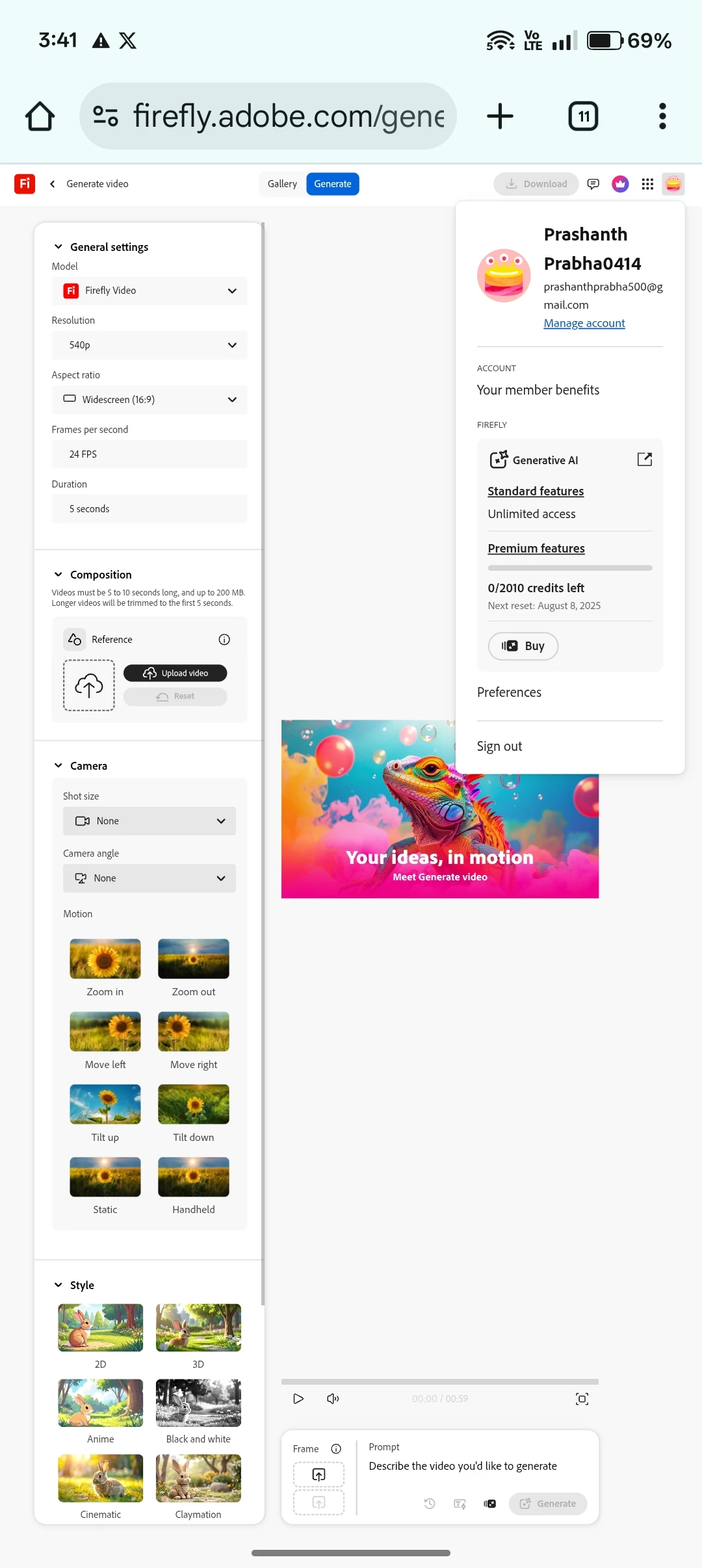 You need to have sufficient credits to generate a video. You can check how many credits you have remaining by clicking on your avatar in the upper right corner of a Firefly page: