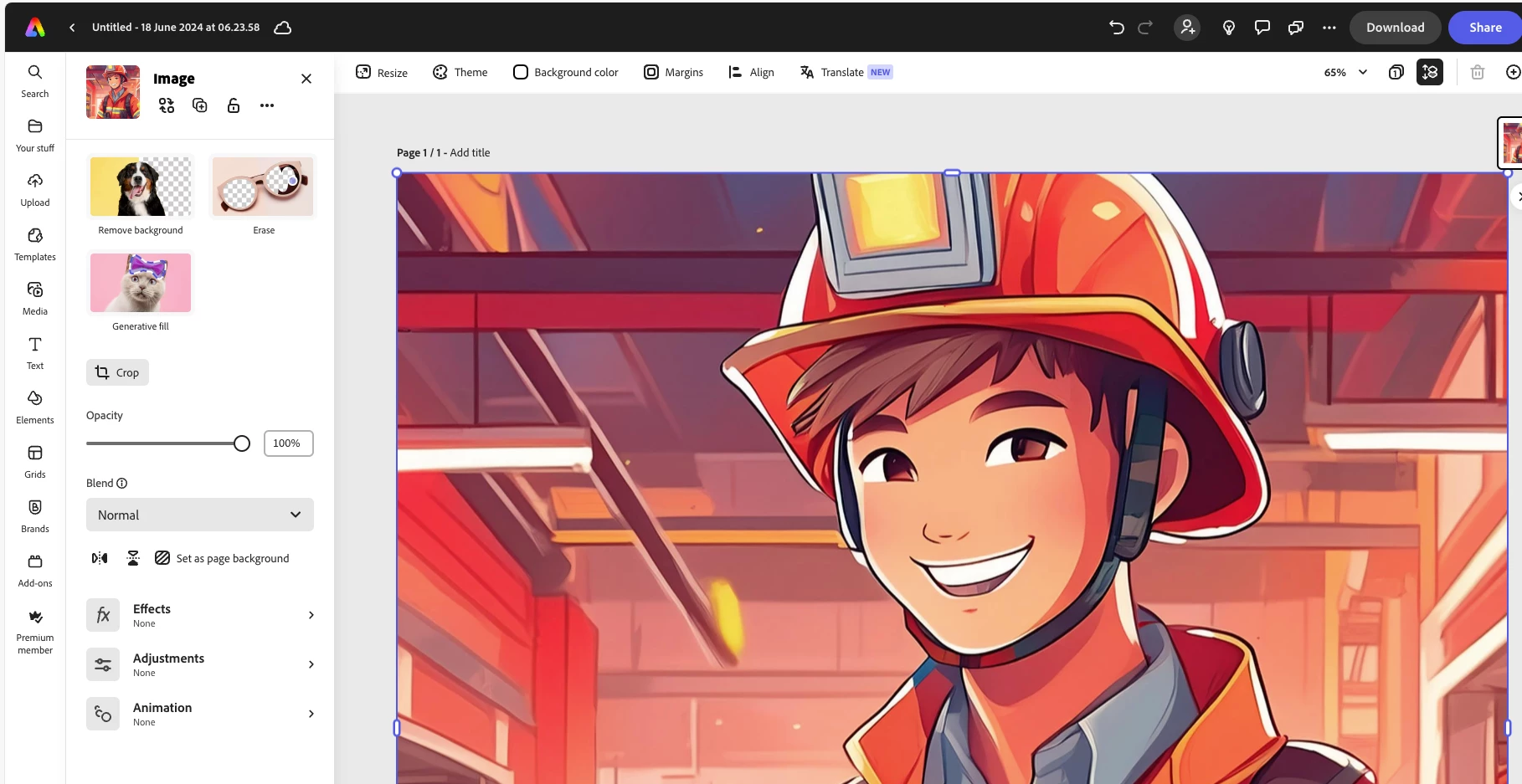 You can send images created with Text to Image directly to Adobe Express. This is convenient if you want to add text, make the image transparent, or use it for a larger project.