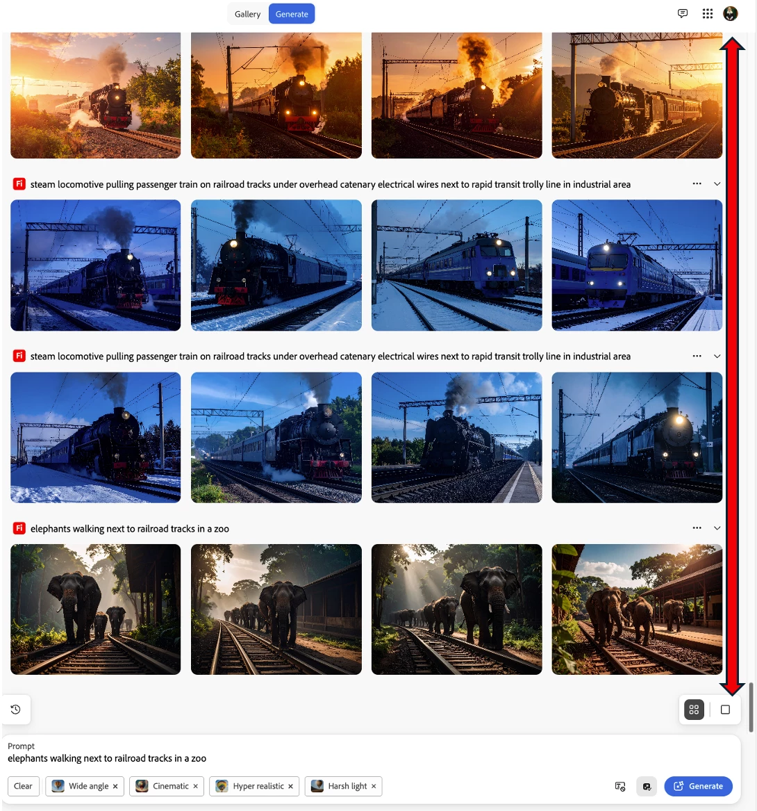 Firefly maintains a copy of the images you generated during your current session. You can move between different images generated during that session.