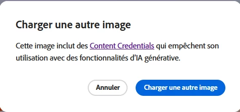 Firefly Charger une autre image Cette image inclut des Content Credentials qui empêchent son utilisation avec des fonctionnalités d’IA générative