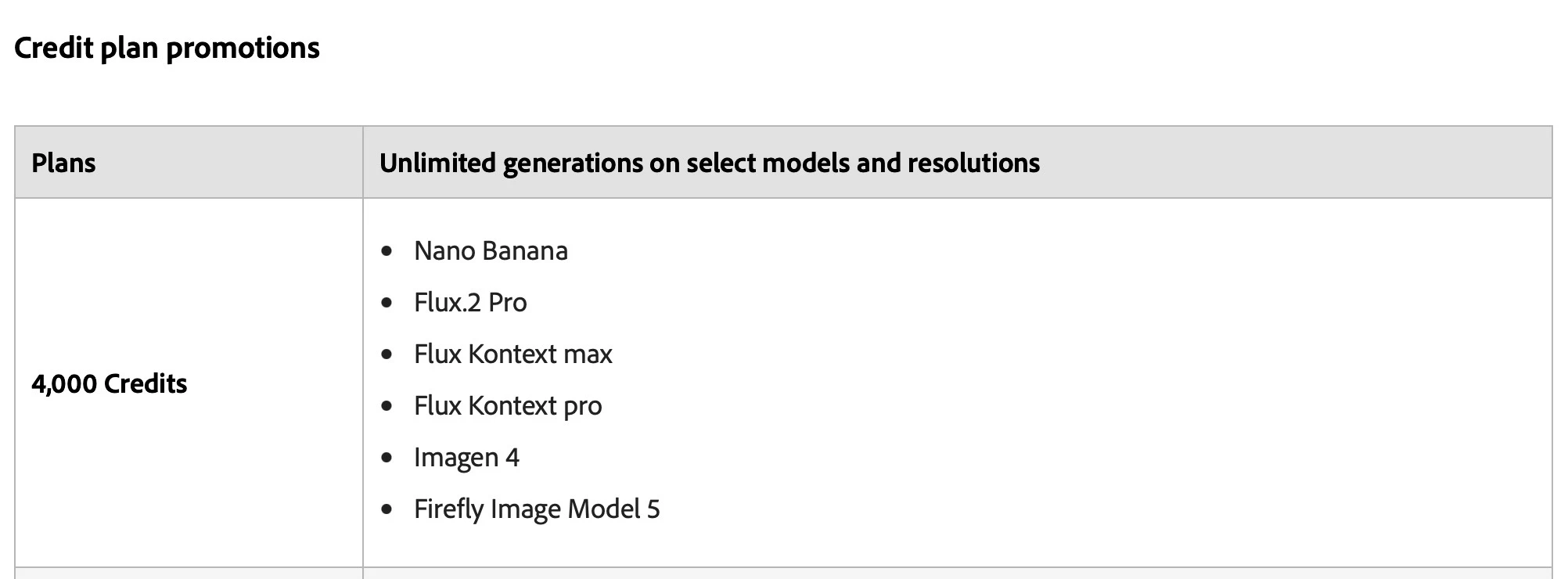 For additional clarity, the screenshot below shows the current promotion for customers with the 4,000 credit plan. When I generate an image using those models, I’m still having credits deducted.