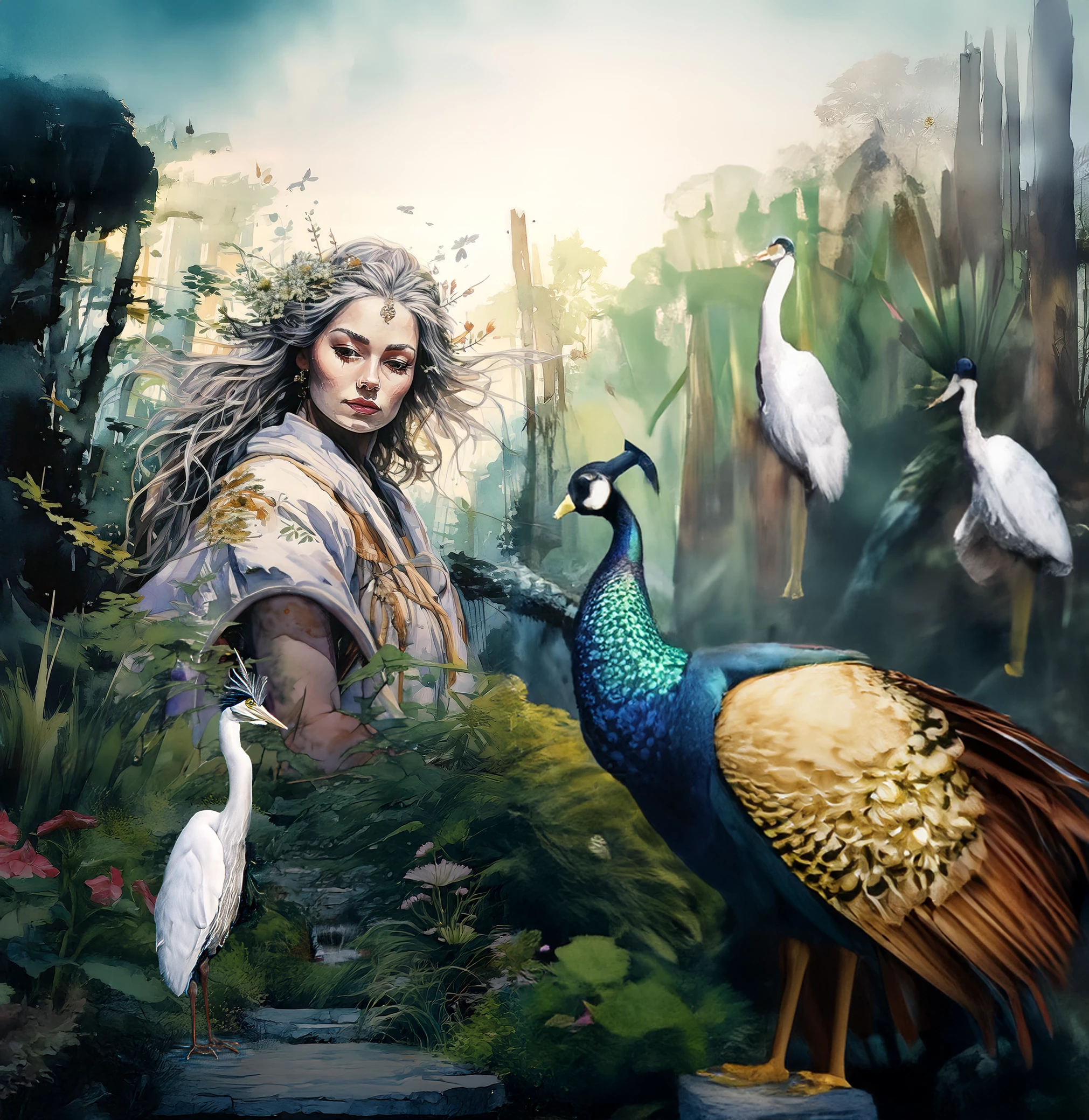 This example uses multiple generated images composited in Photoshop, adjusted with the Camera Raw filter, and fleshed out with Generative Expand and Generative Fill.