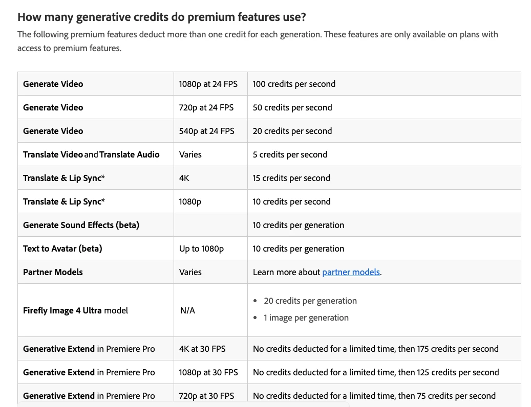 Yesterday, I start generating some videos to try Firefly. It generated non-usable 5' videos... and it ate more than 50% all my monthly credits! (only trying som tests) So... It ate 400 credits for 1 video only... and can't even using it*
