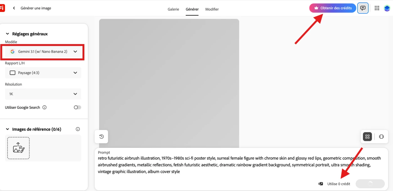 Comme la photo l’indique, firefly ne génère aucune image depuis quelques jours. Il charge il charge il charge mais rien n’apparait.