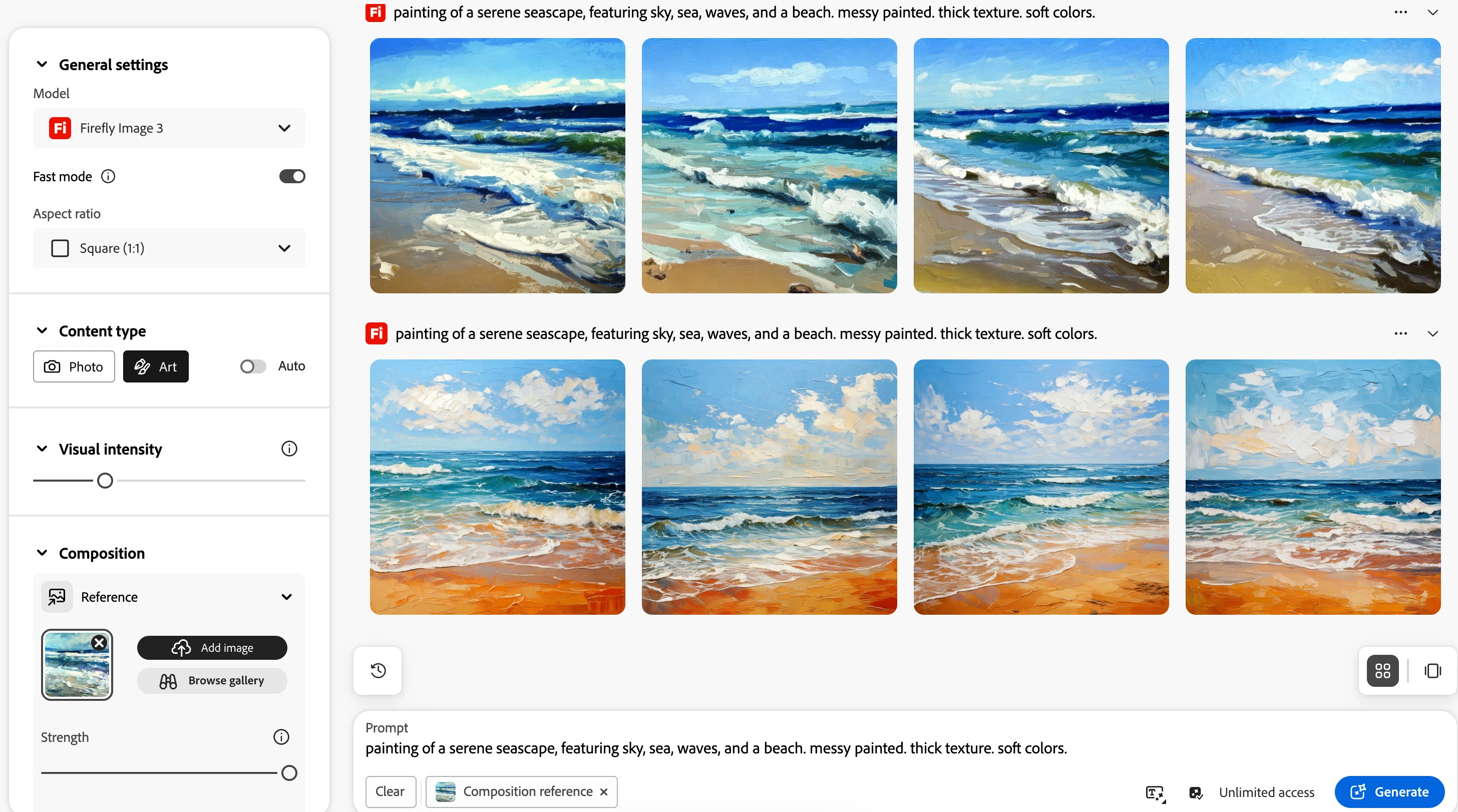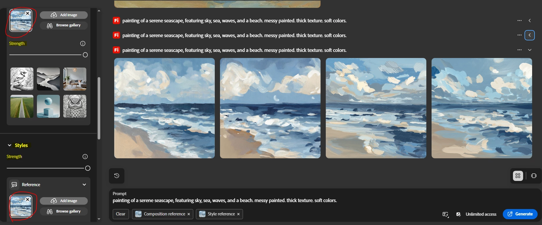 I have an example of when I used Firefly previously to create images that I needed (the first row) based off a similar style composition I wanted. However using the same settings now result in a very different result that seems to ignore the composition/ style reference. I have played around with the sliders but nothing seems to work any suggestions?