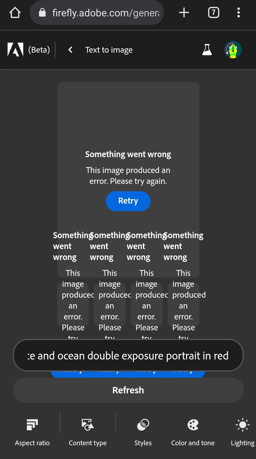 Firefly Text to Image not working