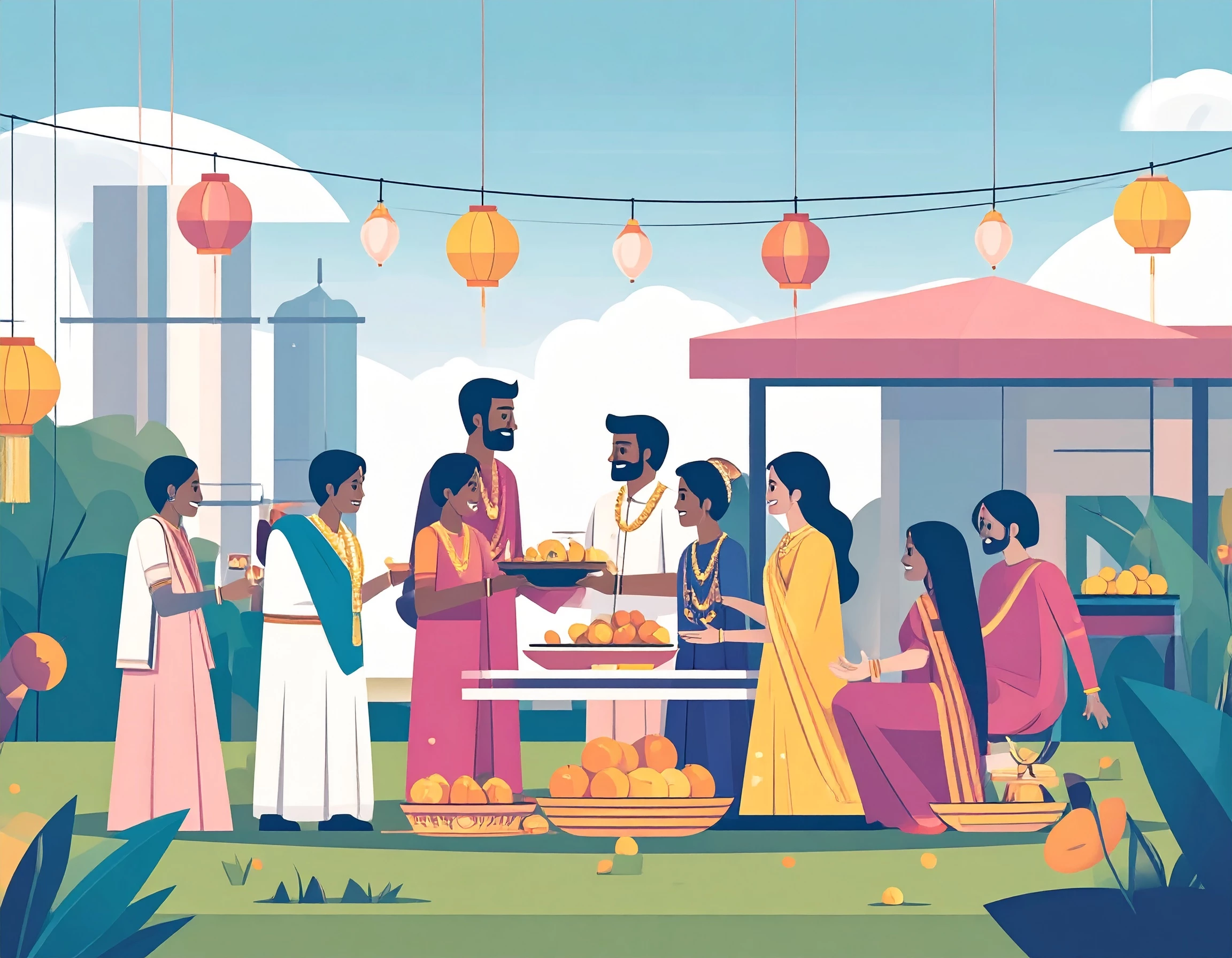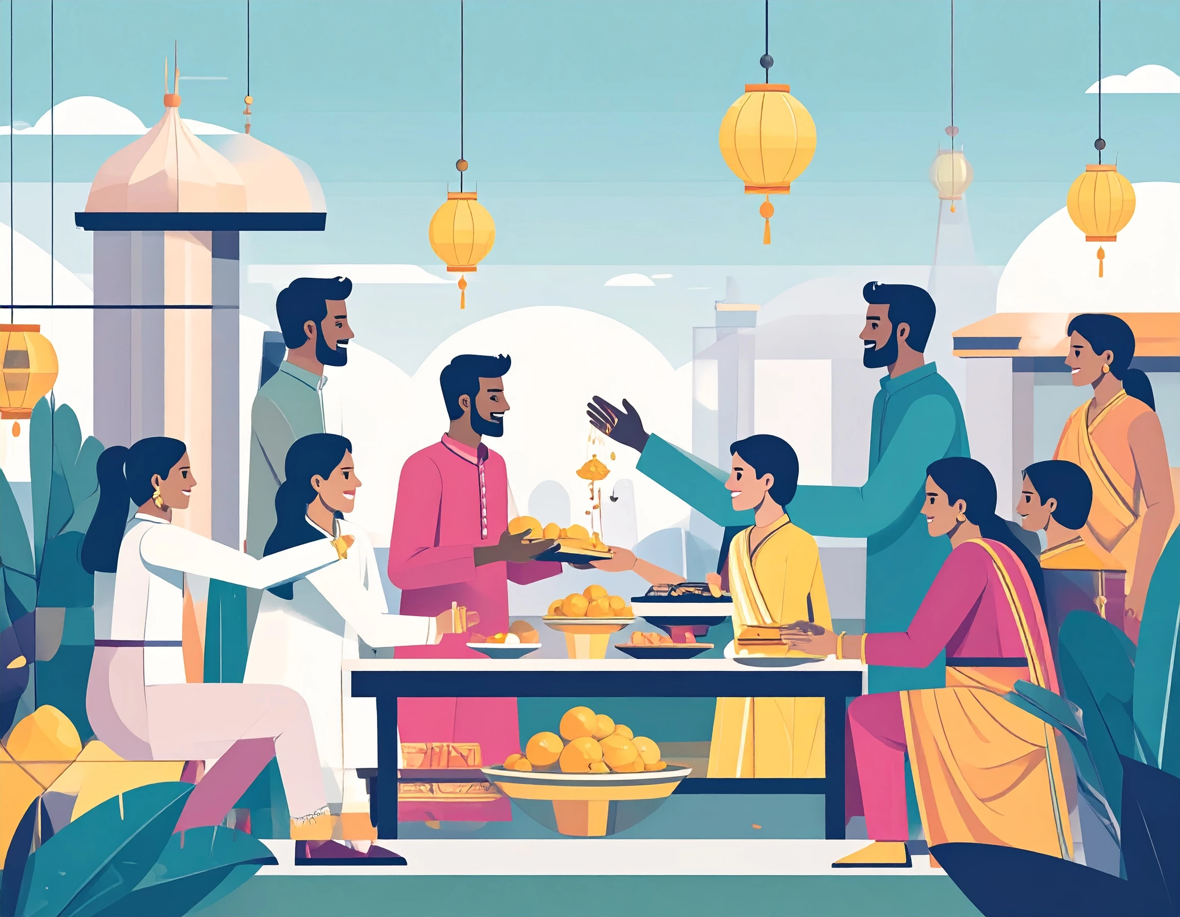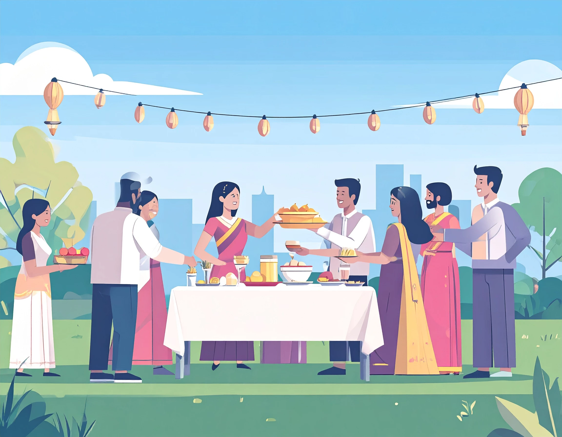 With the following multiple prompts in sequence, despite mentioning a lot of western outfits and no on traditional clothes, no on food - it keeps generating very stereotypical images of what looks like Indians dressed up in sarees and kurtis (traditional clothing), celebrating a festival, with festive decorations and sharing food. Please let me know of any way to not get stereotypical content. Attaching an image with one generation from each prompt